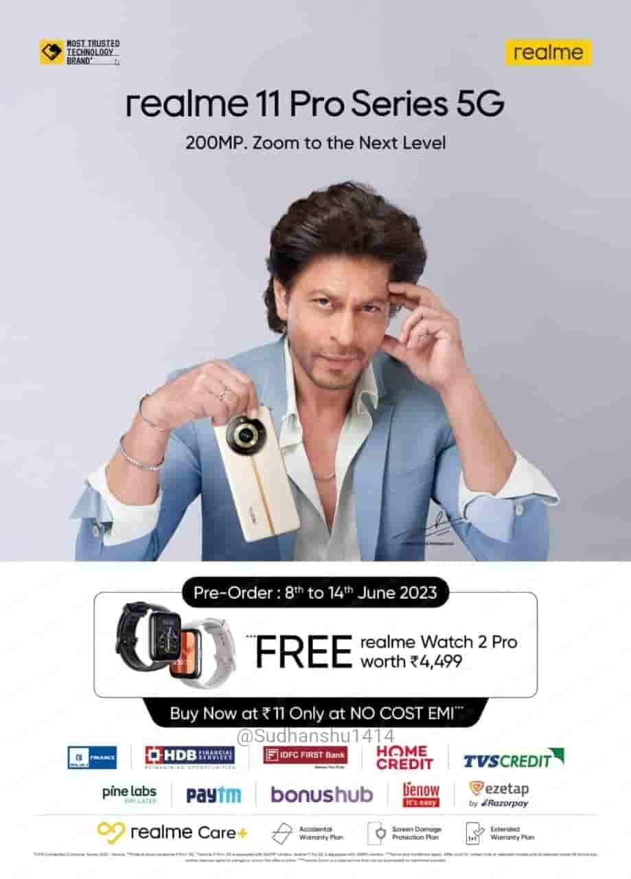 Realme fans have been waiting for the upcoming Realme 11 Pro 5G series phones. As the anticipation is increasing, the official date from when pre-orders will be welcomed has been leaked already. Thanks to tipster Sudhanshu who took to his social media profile and shared the poster. In the poster, we can clearly see that the upcoming Realme 11 Pro Series in India can be pre-booked offline from June 8th. The attractive call for customers planning on pre-ordering is that you will get the Realme Watch 2 Pro for free. If we talk about the pricing of this smartwatch, it costs around Rs 4499.
