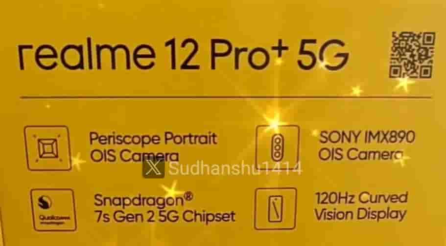Along with this information the user has also shared an image of a retail box that is expected to belong to Realme 12 Pro+ 5G smartphone. As per the image, the smartphone can come with a Snapdragon 7s Gen 2 5G processor and can feature a periscope portrait OIS camera, with a Sony IMX890 OIS camera.