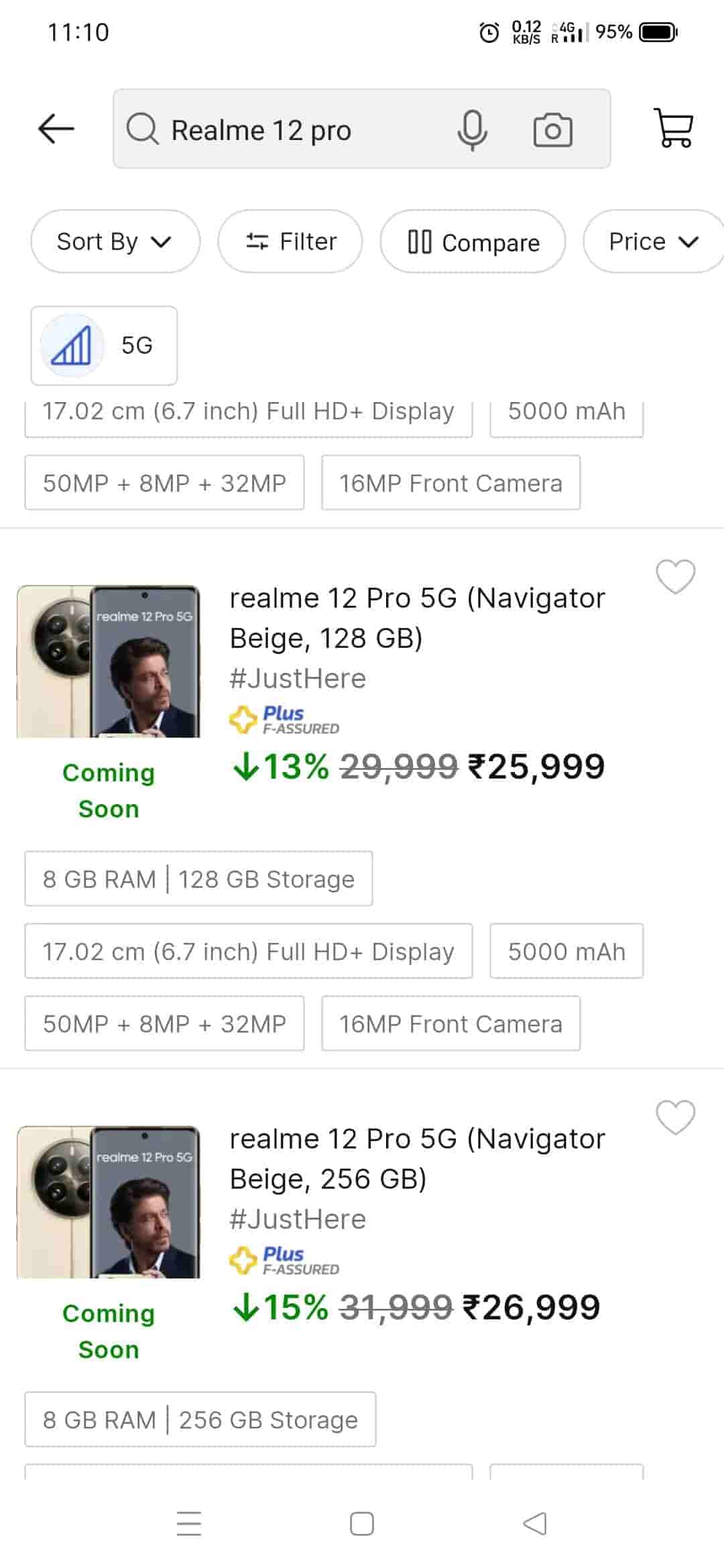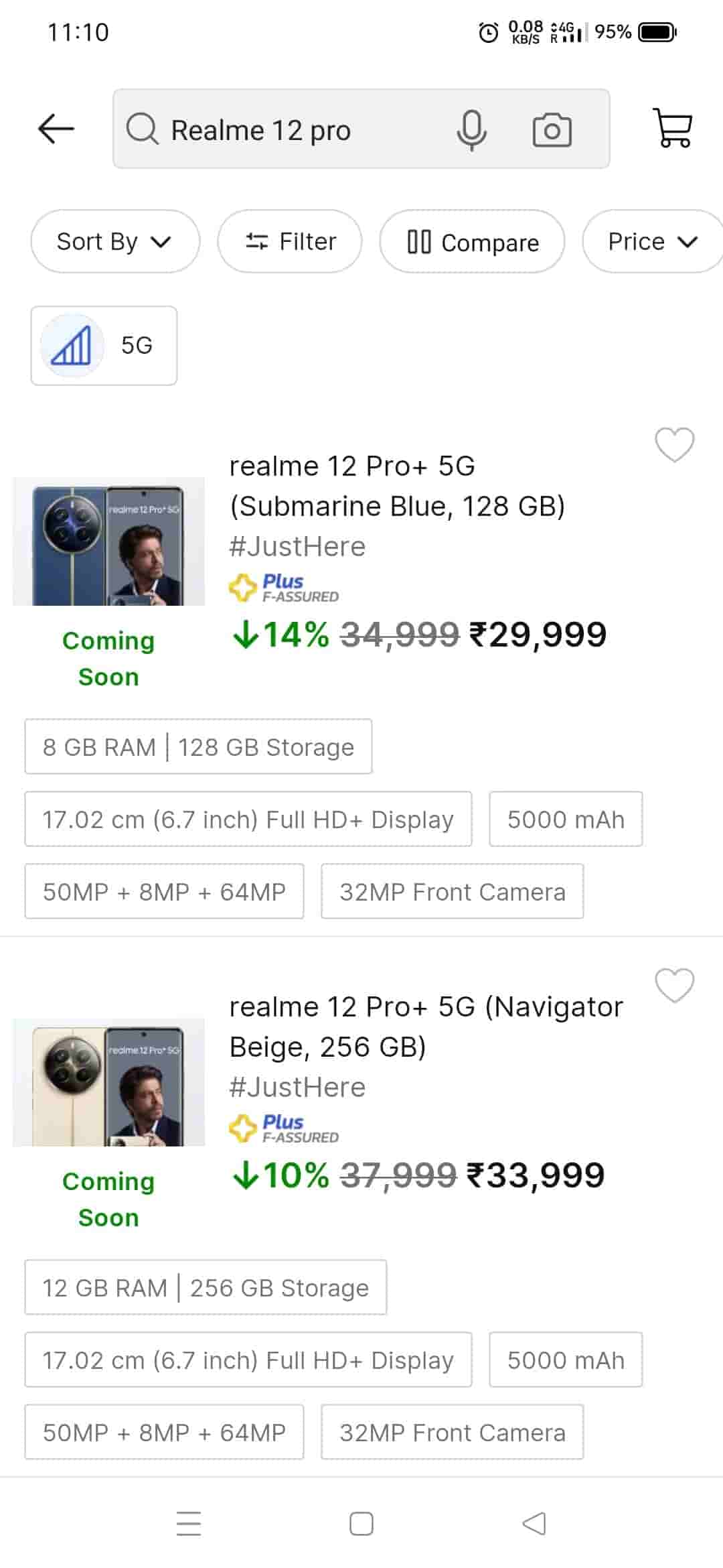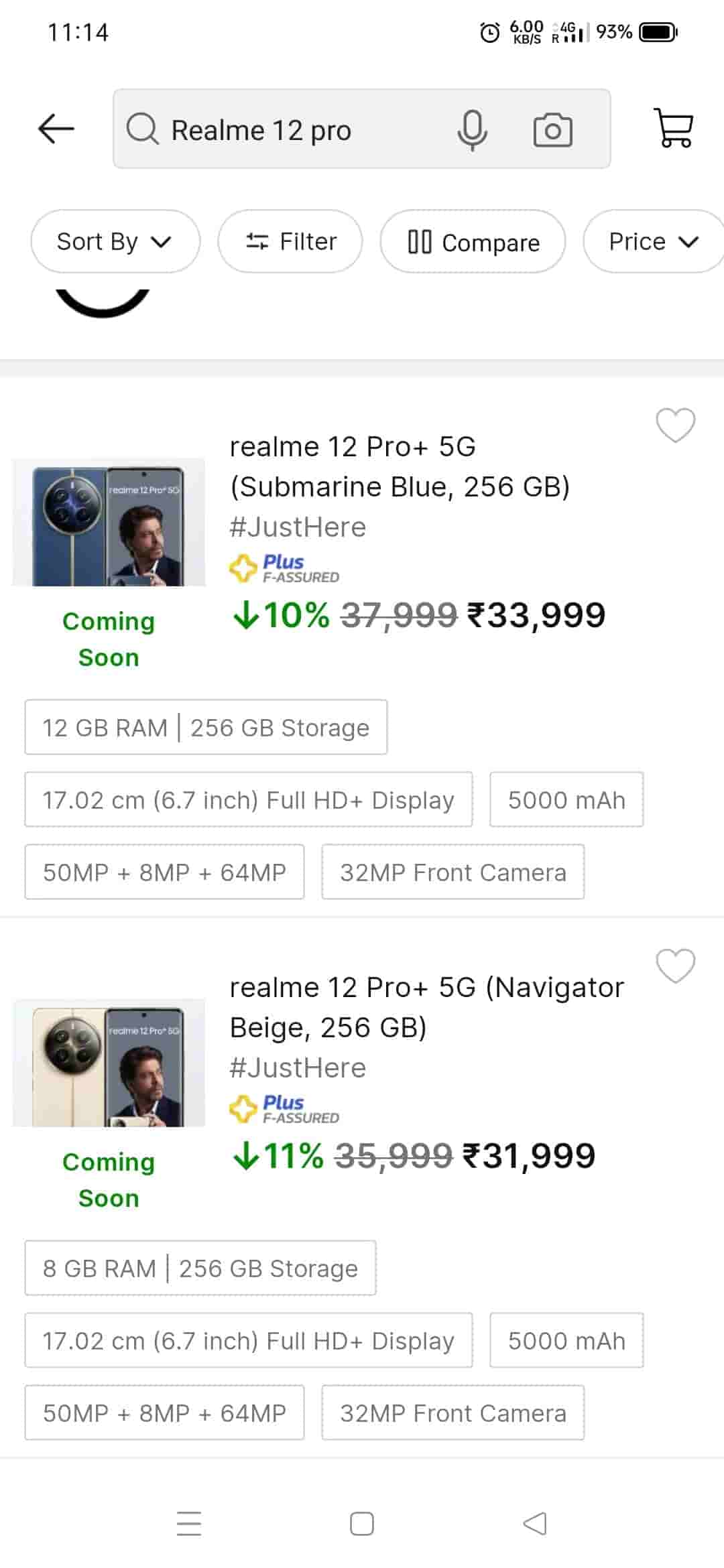 The Realme 12 Pro device is pointed out to come in two storage options in the Indian market. Users will be able to pick from 8GB/128GB and 8GB/256GB models, and the two have suggested offer prices of Rs. 25,999 and Rs, 26,999 (with actual list prices of Rs. 29,999 and 31,999) respectively.