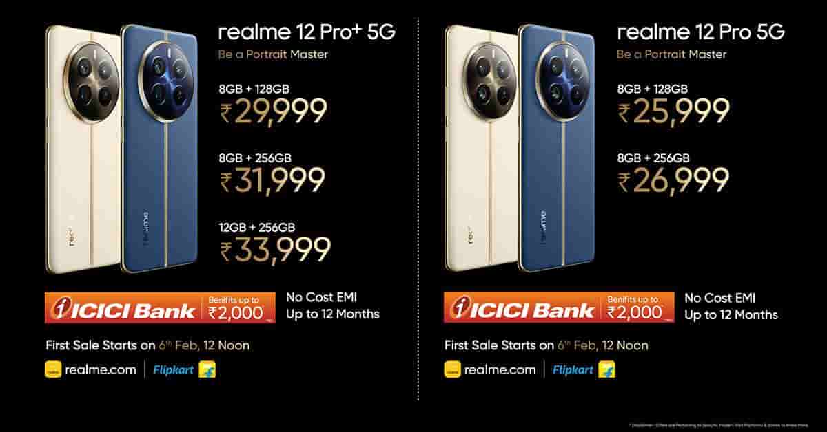 The first sale for this latest series will start on 6th February at 12 noon. It will be available for purchase via Realme.com, Flipkart, and stores nearby. The company is also offering benefits up to Rs.2000 on ICICI Bank transactions and A no-cost EMI facility for up to 12 months. The early access sale for this series will start from today at 6 PM onwards on Realme.com and Flipkart. Also, Realme 12 Pro+ 5G Explorer Red variant will be made available from 9th February onwards.