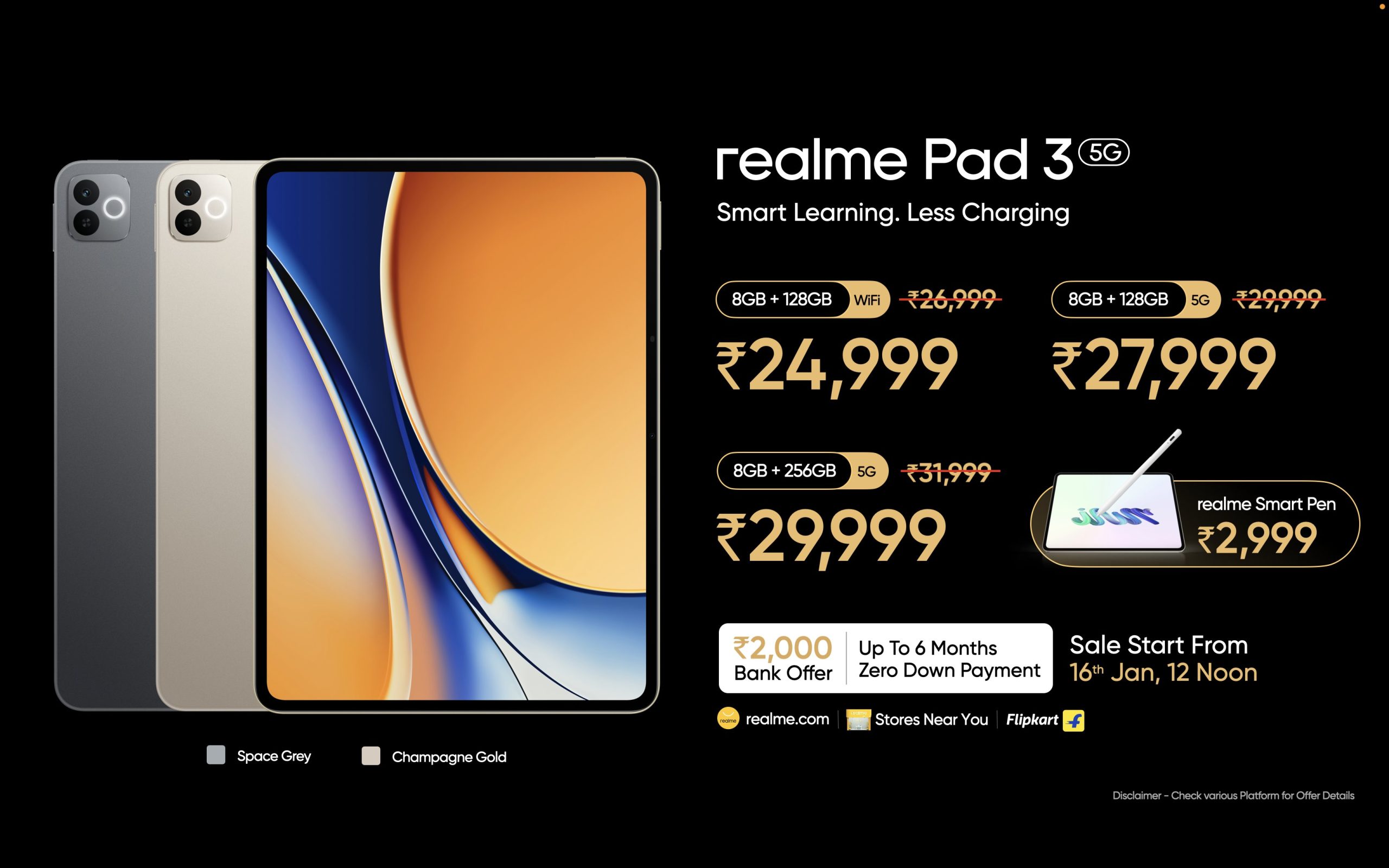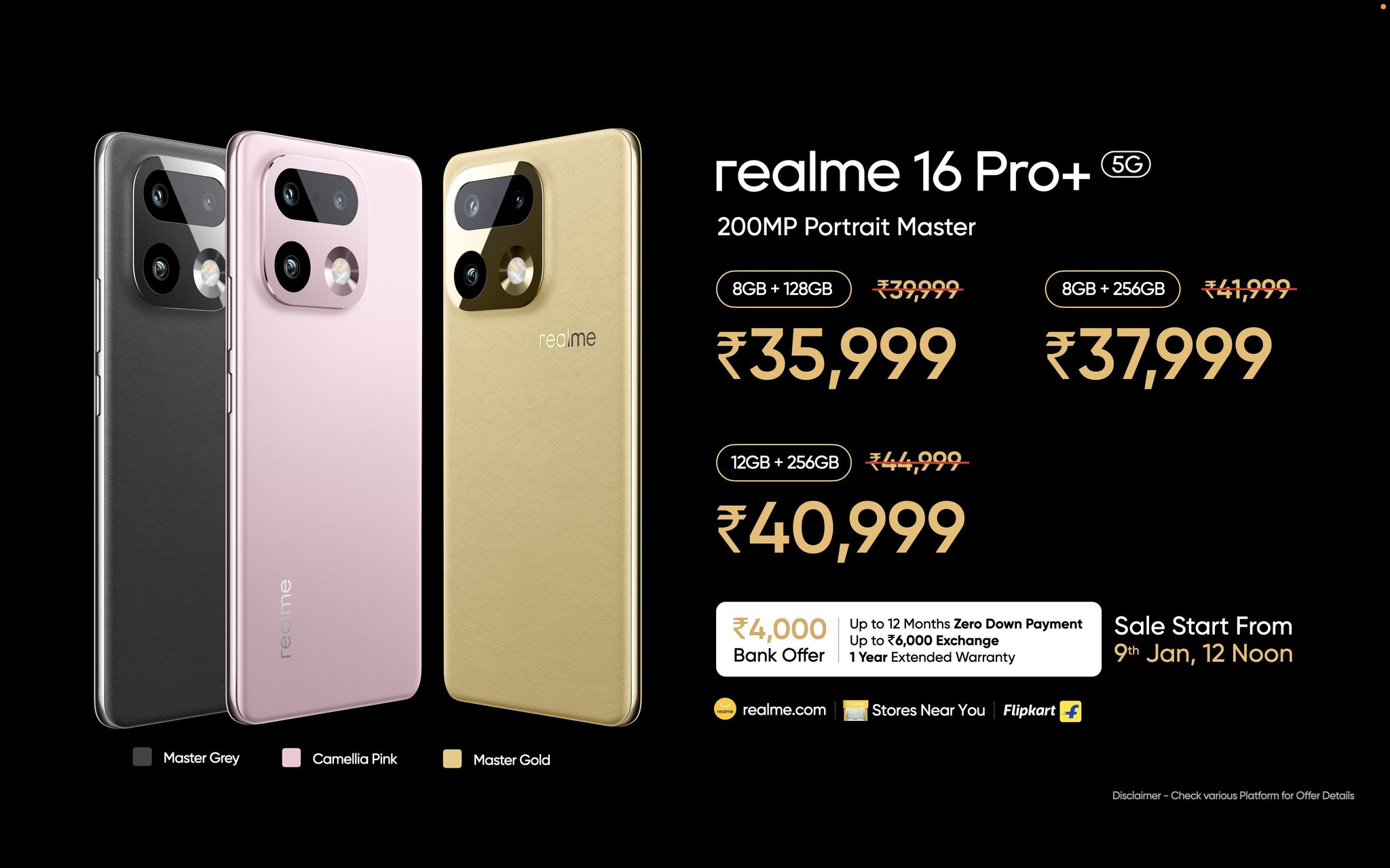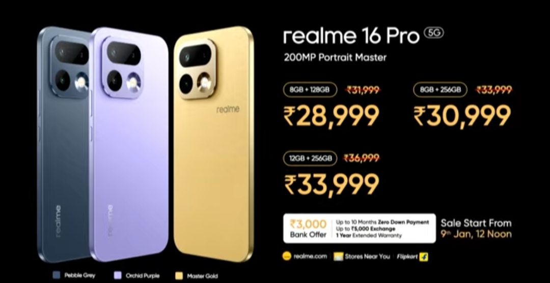 Consumers can also avail up to 12 months (Realme 16 Pro+)/ 10 months (Realme 16 Pro) Zero Down Payment, up to Rs 6000 exchange (Realme 16 Pro+)/ up to Rs 5000 exchange (Realme 16 Pro), and 1 Year extended warranty. The sale for these devices will start from 9th January via realme.com, Flipkart (Realme 16 Pro/ Realme 16 Pro+), and stores nearby, while the pre-bookings are already open.