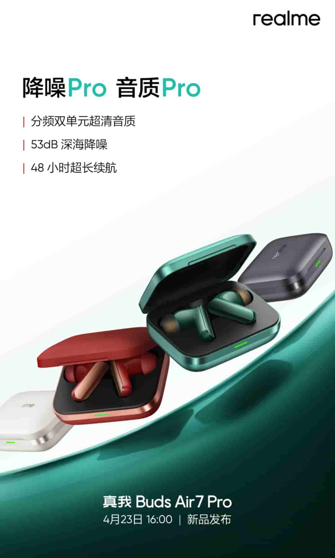 Realme Buds Air 7 Pro confirmed to launch in China on 23rd April; Realme GT 7 to be equipped with first e-sports network grabbing chip