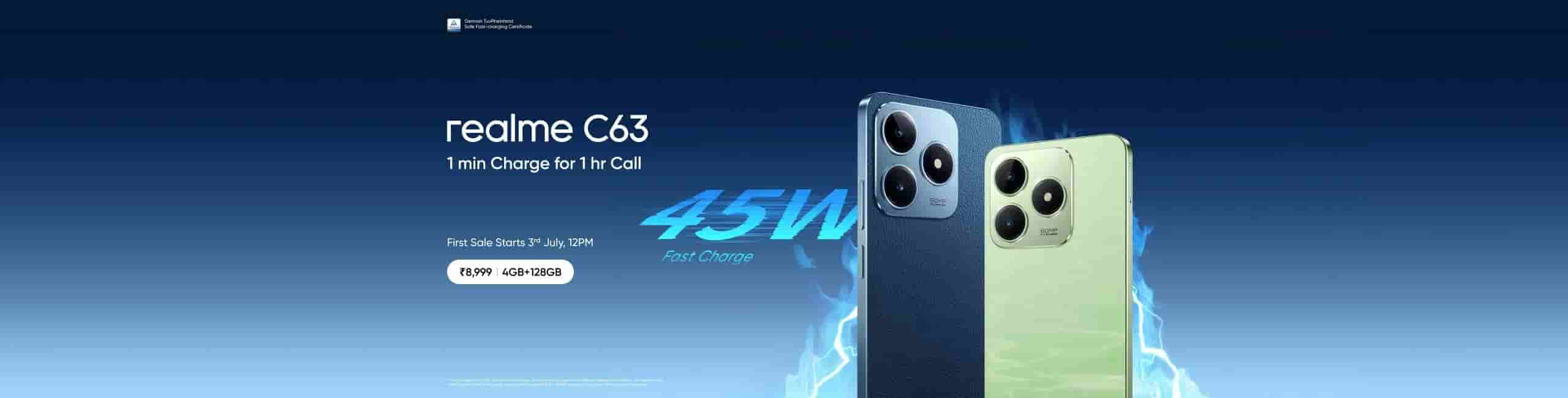 The Realme C63 will be available for purchase from tomorrow, 3rd July, and is priced at Rs 8,999. It comes in a single memory option of 4GB RAM and 128GB storage and will be sold via Flipkart, the Realme India website, and other major retail outlets. For those interested in colour options, the phone is available in Leather Blue and Jade Green.
