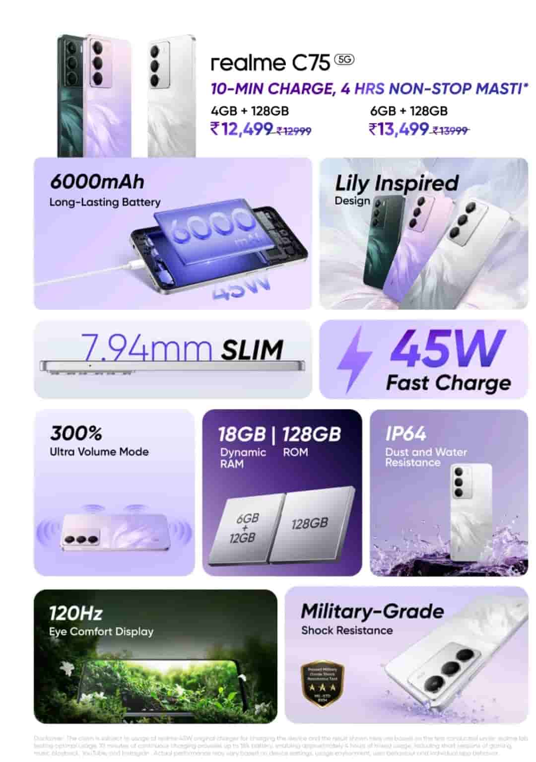 Realme C75 5G with MediaTek Dimensity 6300 SoC and 6000 mAh battery launched officially in India