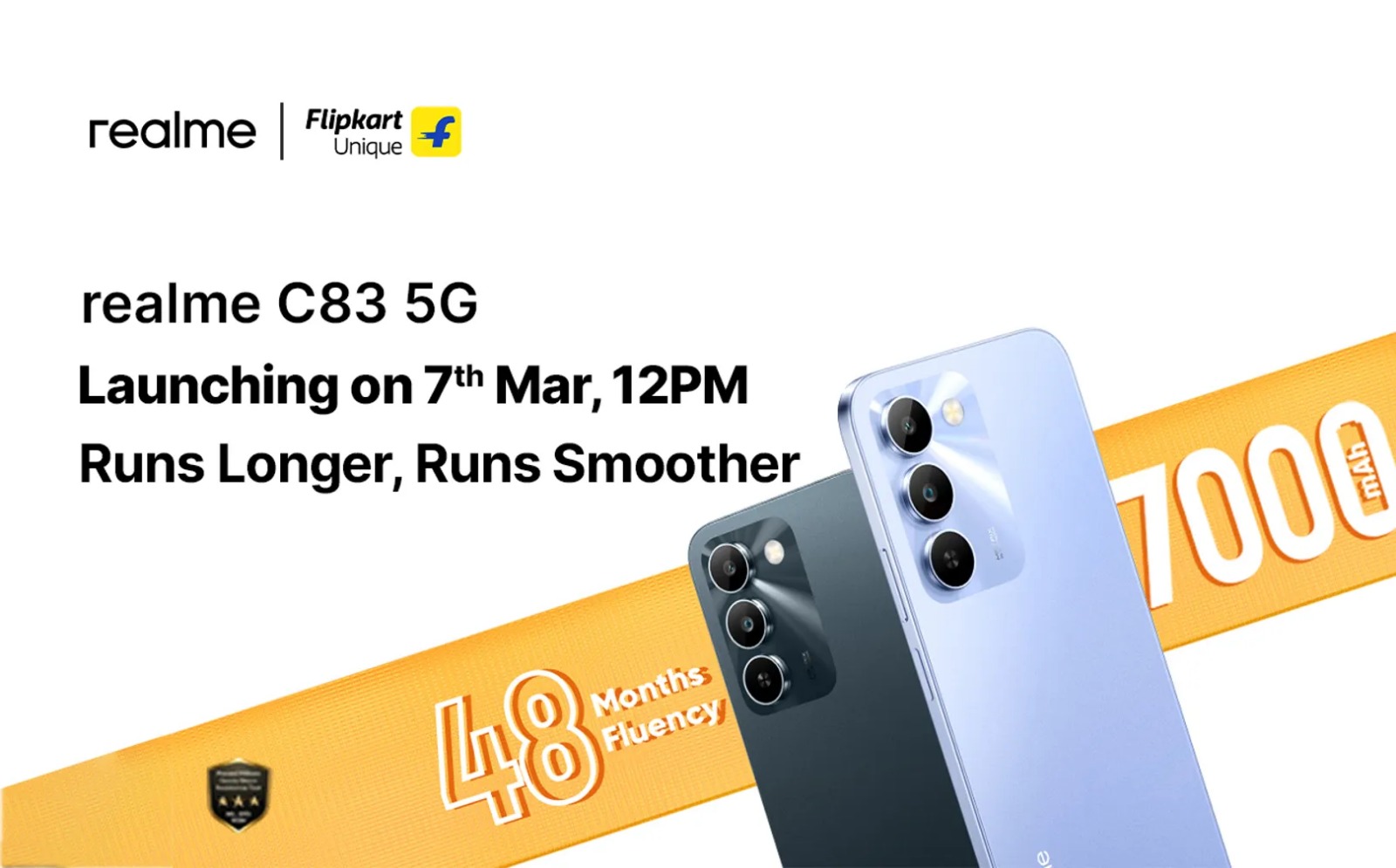 Today, Realme has officially announced that the Realme C83 5G smartphone will launch in India on 7th March at 12 PM.
