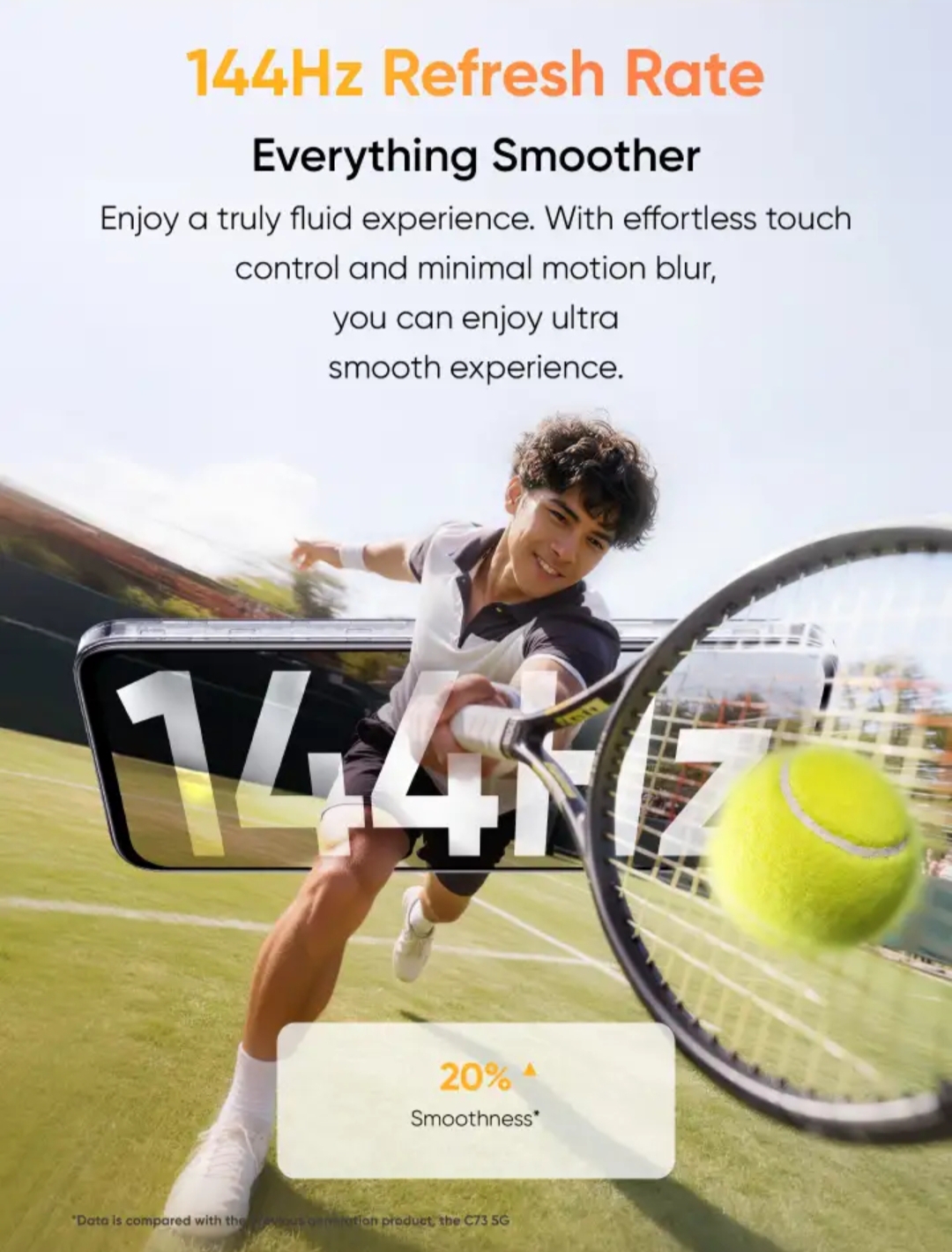 It boasts an IP64 dust and water resistance. The display offers a 144Hz refresh rate, and users can enjoy ultra smooth experience with effortless touch control and minimal motion blur. The smartphone comes in Blooming Purple and Sprouting Green colours.