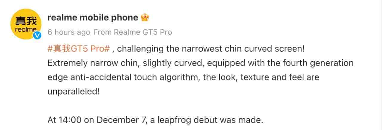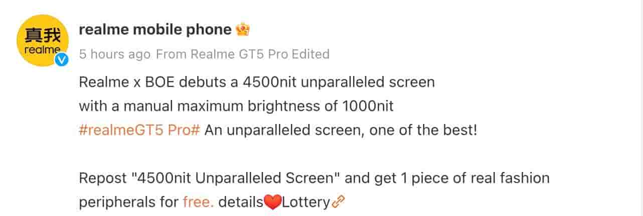 Realme GT 5 Pro Smartphone More Display Specs Teased Ahead of its Scheduled Launch