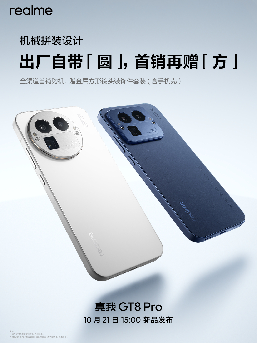 Realme GT 8 Pro features an industry-first mechanical assembly design, allowing for interchangeable lens modules. The device comes with a round design camera module, and the square design is included with the first sale. Consumers who will purchase the device during the first sale will receive a free metal square lens decoration and phone case set (across all channels).