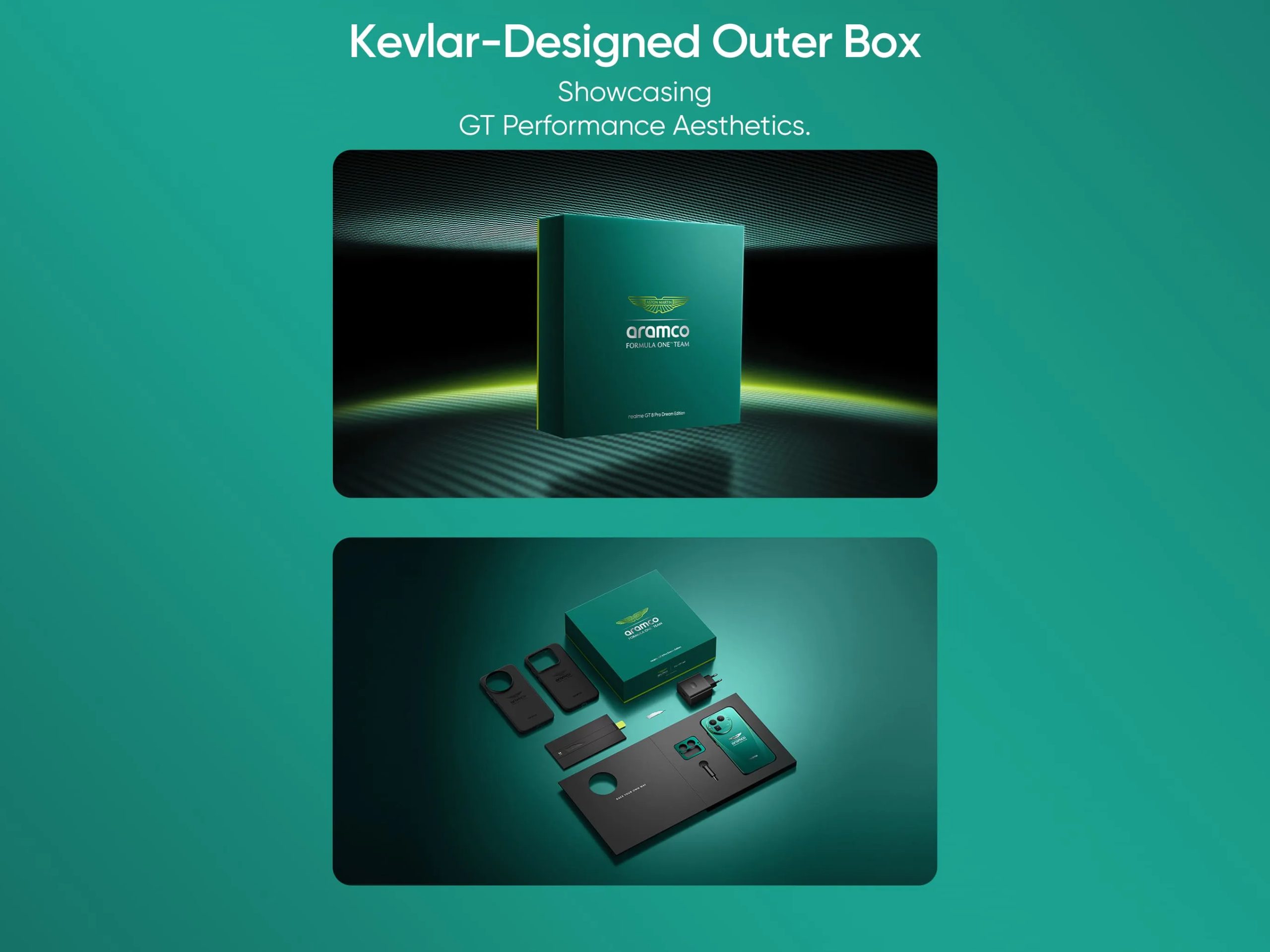 The landing page that is now live on the brand’s official website also reveals a few details about this smartphone model. Design elements such as the Textured Wing Logo and Aerodynamic Curve, F1 camera watermark, deep UI customization, and Kevlar-designed outer box (with two themed-protective cases, themed-swappable camera module, charging adapter, ejecting tool, and more) are its notable specs.