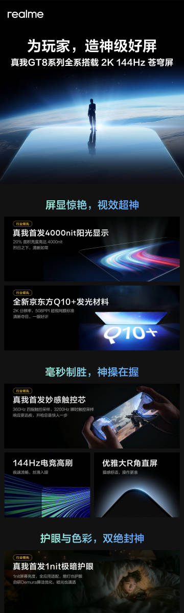It was previously revealed that the Realme GT 8 series will feature a 2K 144Hz Sky screen that is jointly developed by Realme and BOE. And now the brand has shared some more display details of this series.