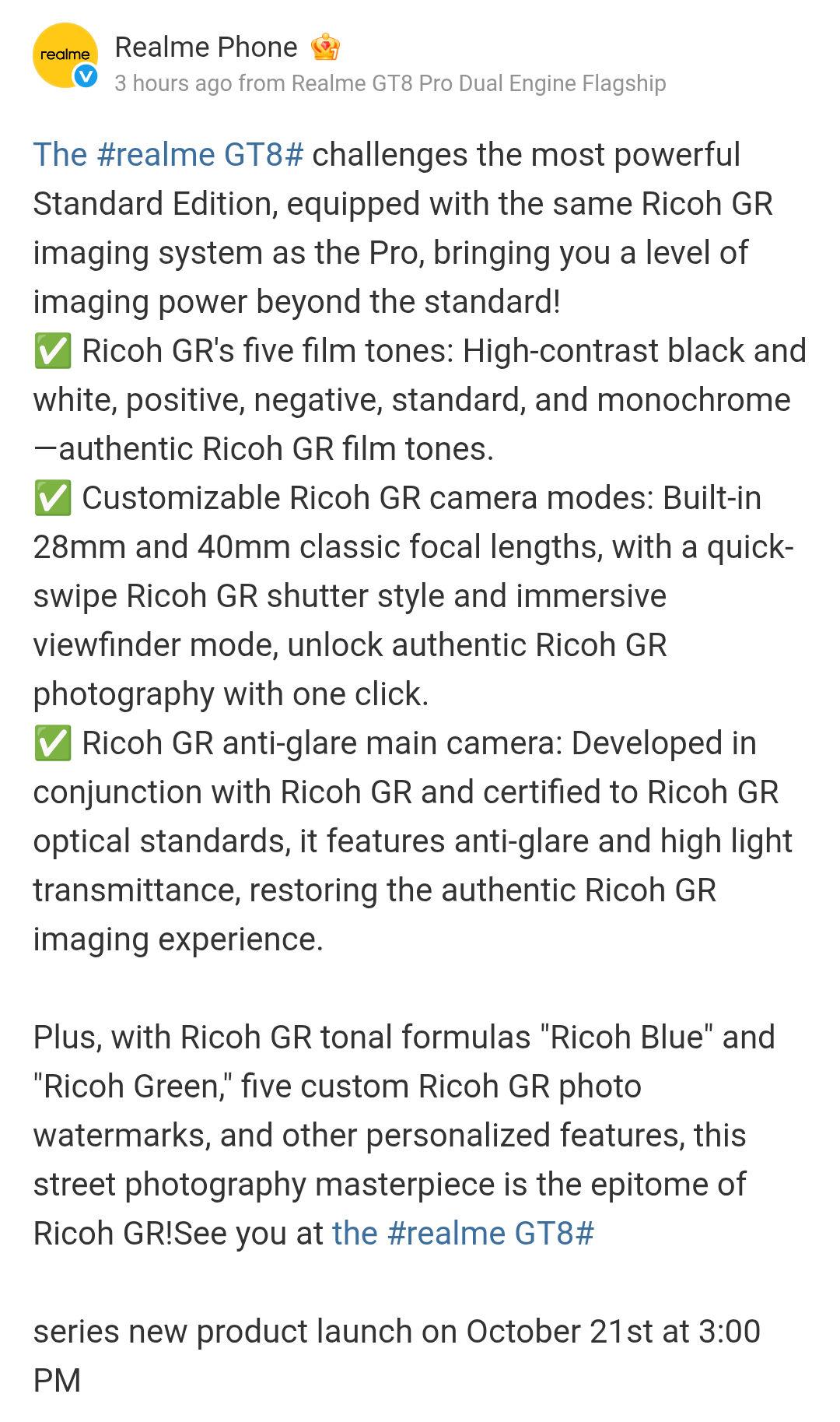 Realme’s GT 8 series debut in China will be taking place tomorrow on the 21st of October 2025 and over the past few days, teaser updates were mostly shared concerning the pro model of the upcoming flagship series. Now, the specs and features of the standard model have also been pointed out, along with a few more details regarding the pro model.