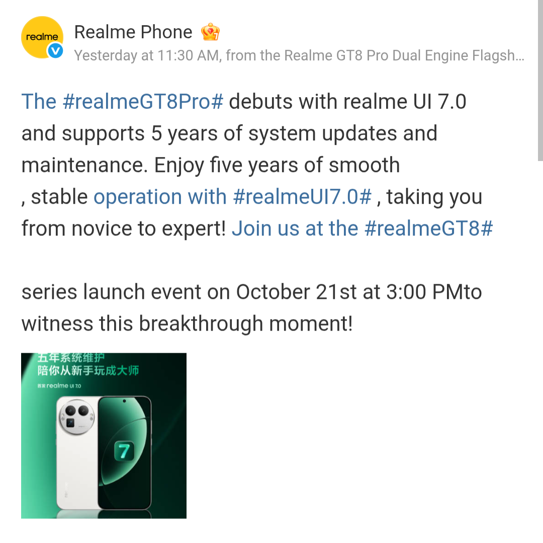 Also, the Realme GT 8 Pro smartphone will be breaking its cover with the Android 16-based Realme UI 7.0 custom skin out of the box, and the brand has promised 5 years of system updates and maintenance on the device.