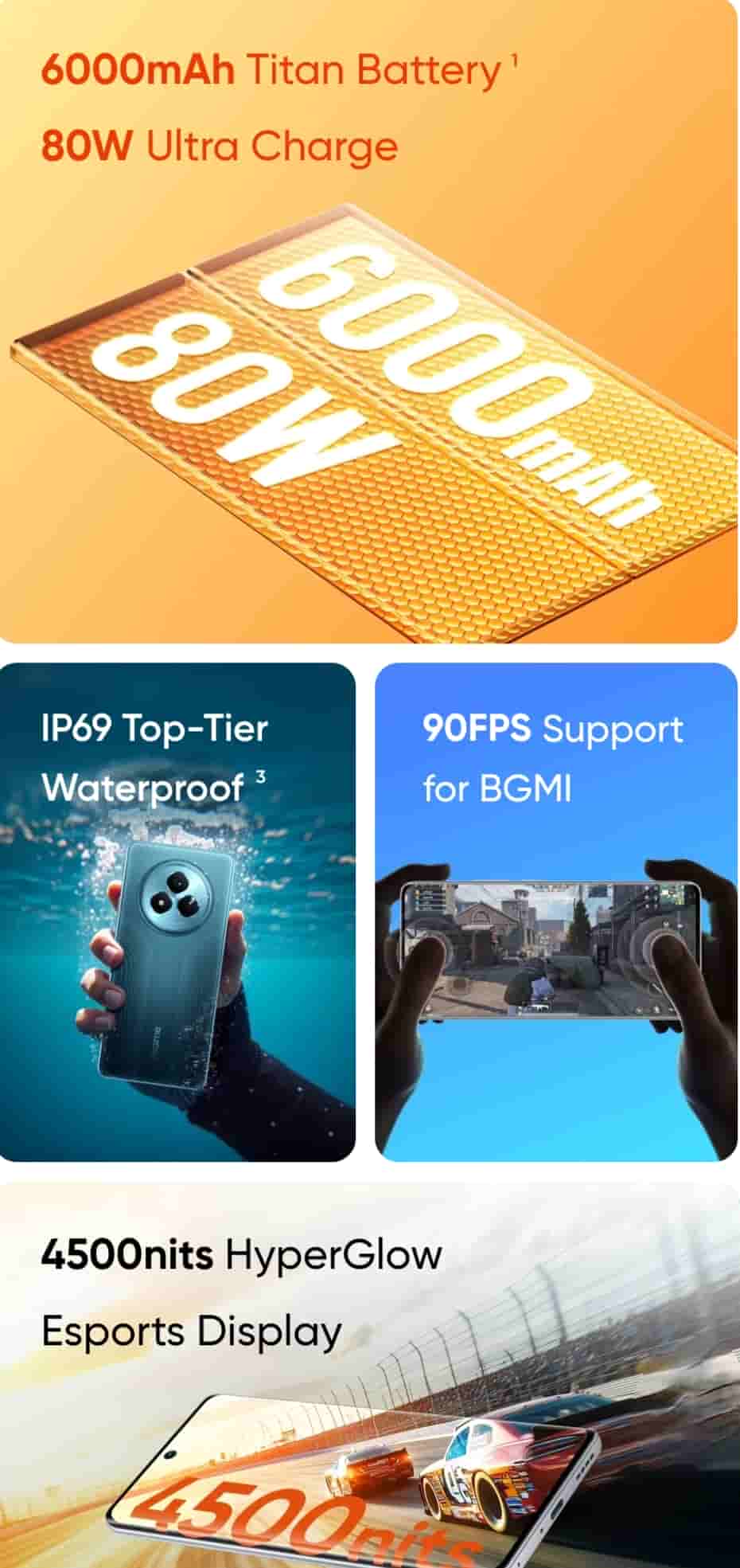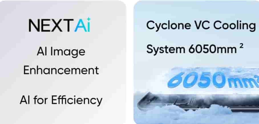 It is backed by a 6000mAh battery and supports 80W wired fast charging. Other features include-IP69 rating, Cyclone VC Cooling system, WiFi 5, Bluetooth 5.4, dual speakers, dual mic with Noise Cancellation, Hi-Res audio, dual Nano SIM cards, USB Type-C port, under screen optical fingerprint sensor, 90FPS support for BGMI, Hyperglow Esports display, Wet Hand touch control, Bypass charging, GT Boost and Next AI features. It arrives with a 7.55mm ultra-slim body and weighs 179g.