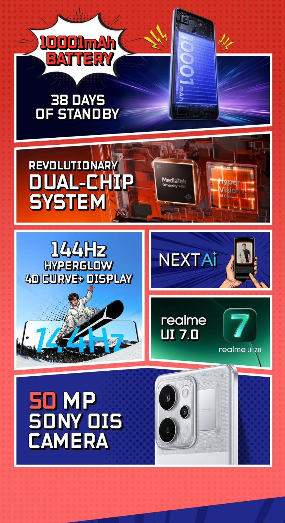 It packs a 50MP Sony IMX882 main camera with OIS support and 4K resolution. It runs on Realme UI 7.0, while the company has promised 3 years of Android OS updates and 4 years of Android security patches. There are two colour options available- Titan Blue and Titan Silver.