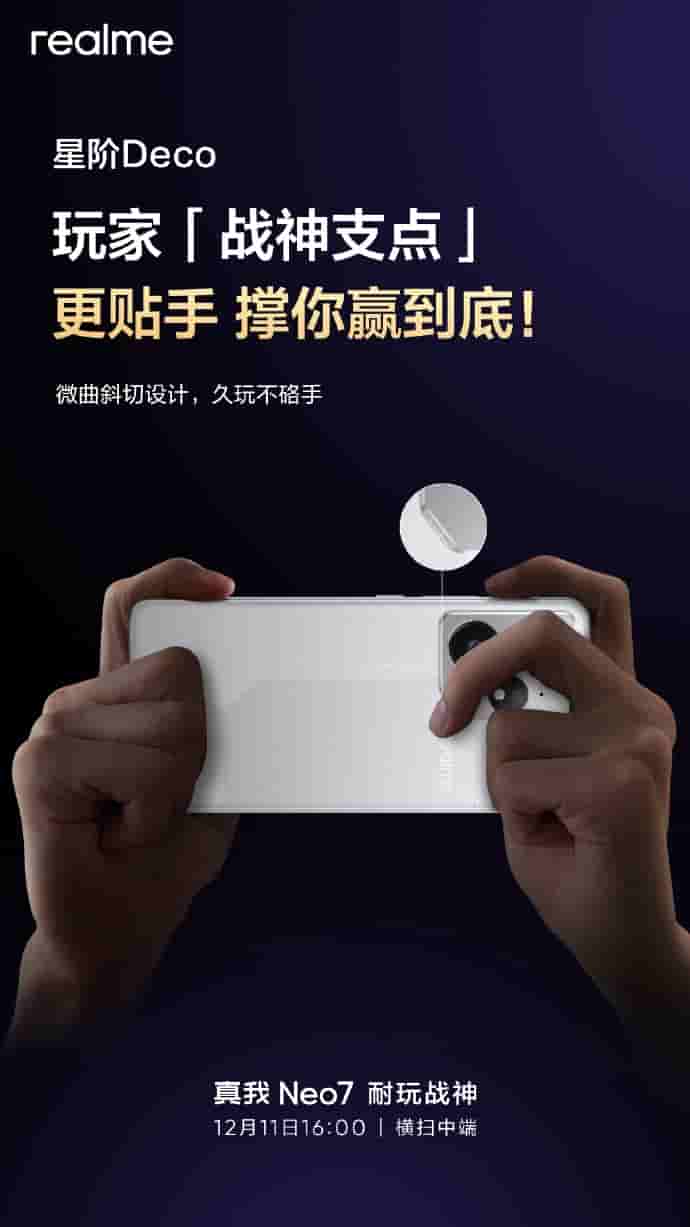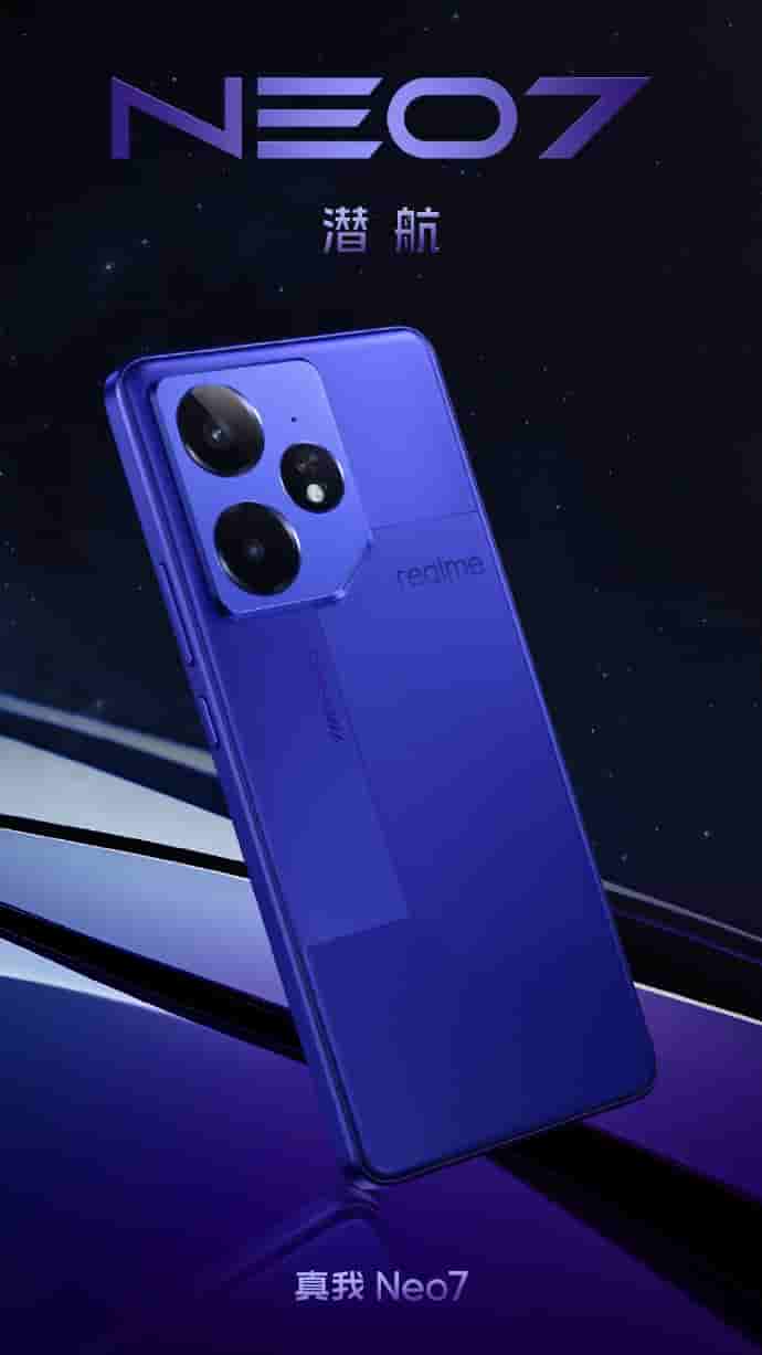 About the color choices, Realme’s Neo 7 device will be made available in three colors – Meteorite Black, Starship Edition (White), and Submarine (Blue). Additionally, the device also has a slightly curved bevel design with the metal precision processing technology, offering its users a longer game play experience without hurting their hands.