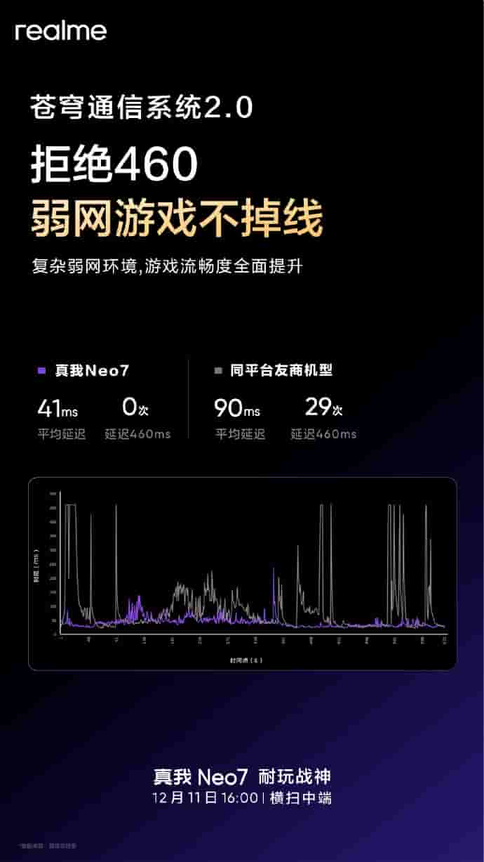 Speaking more, with the Sky Communication System 2.0 technology, increased network connectivity is assured on the Realme Neo 7 in weak areas like subway(40%), dense housing(15.3%), underground garage(97.5%), and remote suburbs(74.4%). With the 41ms average latency support, weak network games won’t drop while playing, and a stable gaming experience is guaranteed.