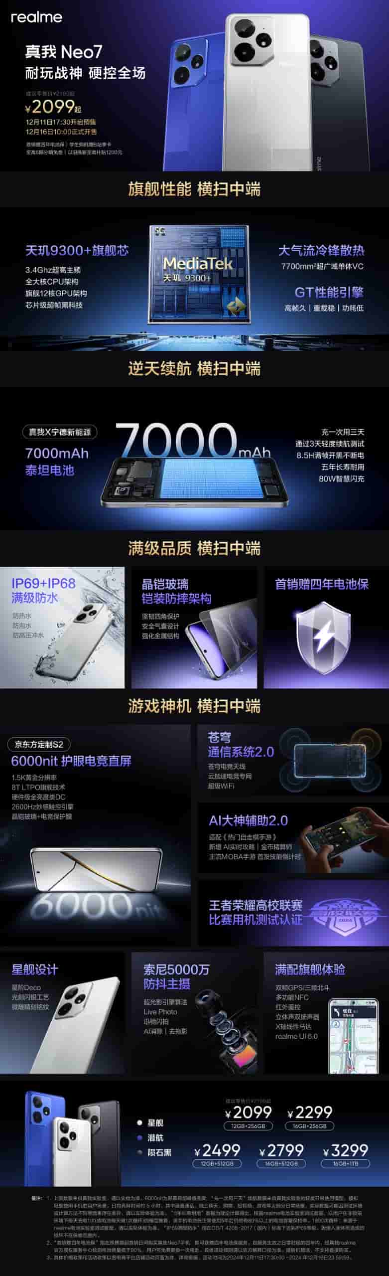 Realme Neo 7 with Dimensity 9300+, 7000mAh Battery, 80W Charging, 6000-nit Display Launched in China