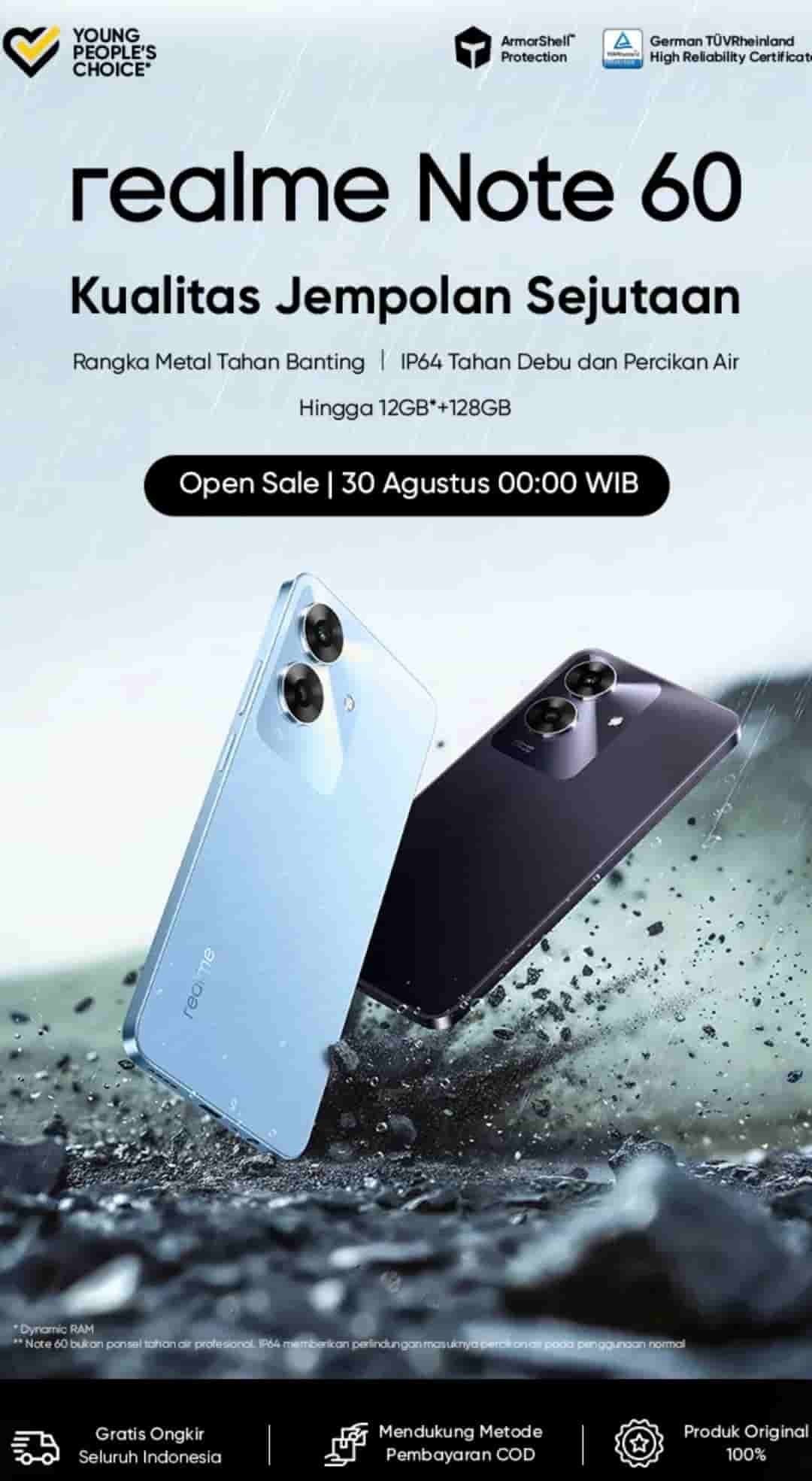 Realme Note 60 microsite has now been made live on Realme’s official website in Indonesia which reveals that the open sale for the smartphone will start on 30th August in the country.