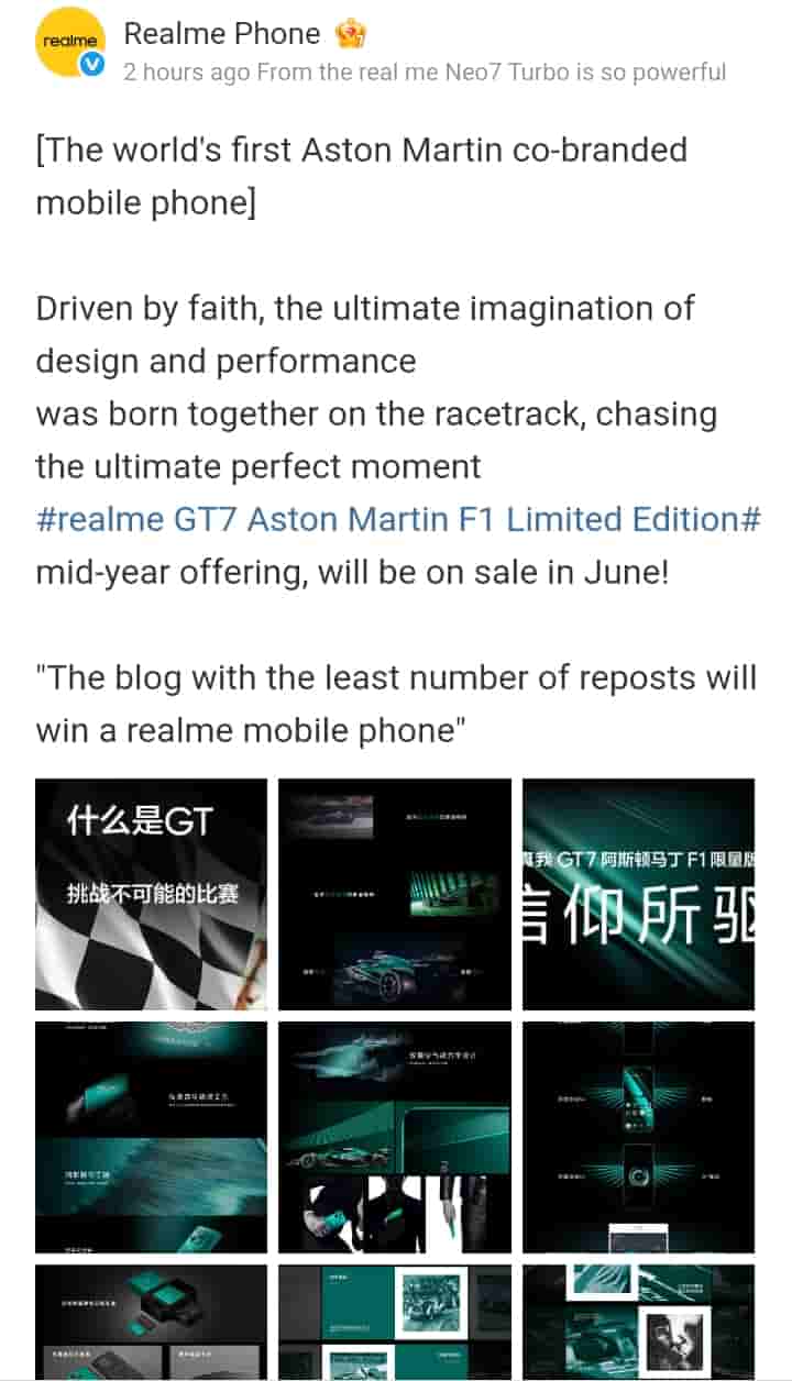 Very recently, Realme unveiled its latest GT 7 limited edition smartphone model – Realme GT 7 Dream Edition made in collaboration with Aston Martin in the global market. This device today was also introduced in the Chinese market as the Realme GT 7 Aston Martin F1 Limited Edition. It has been teased as a mid-year offering and the sale is set to go live next month in June 2025.