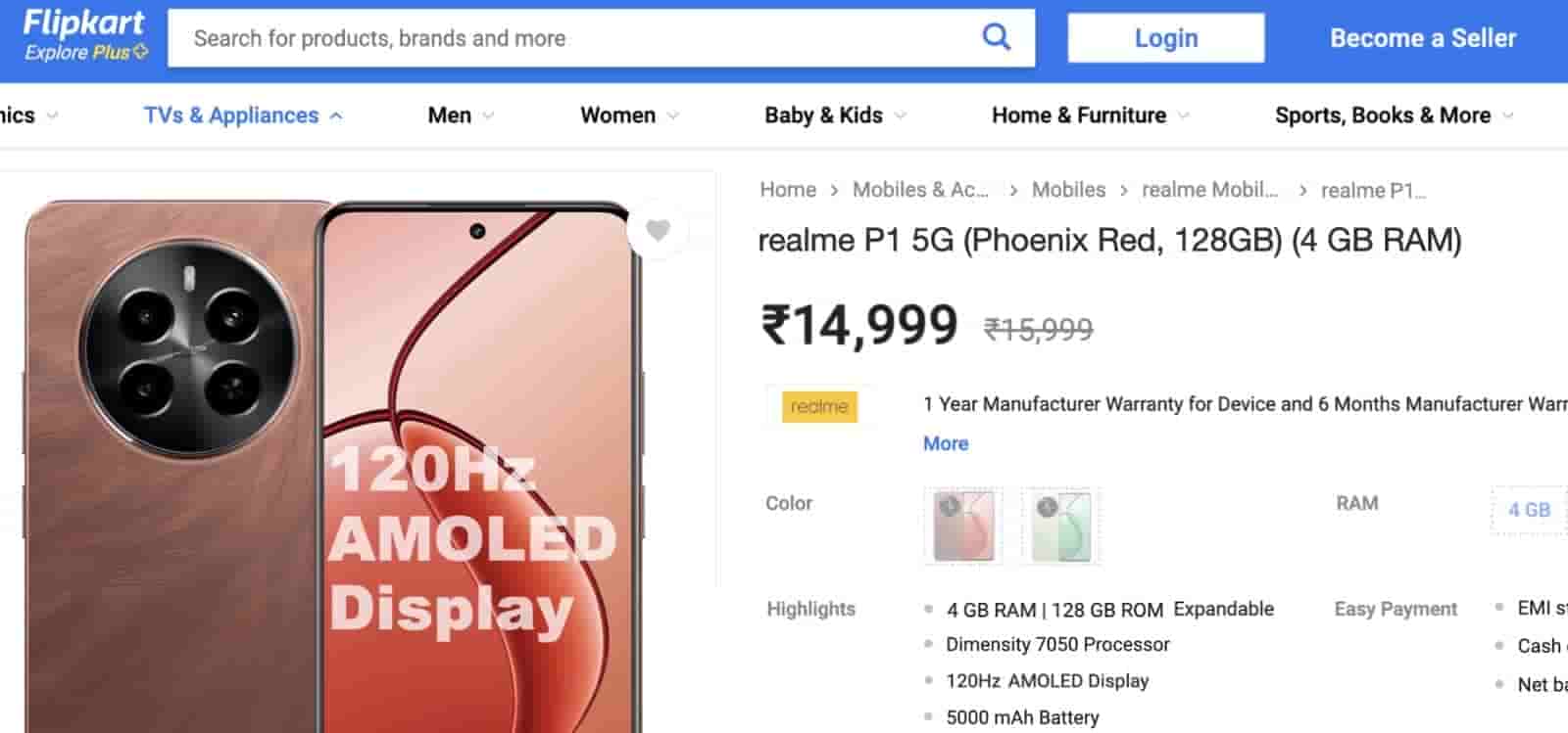 Realme P1 5G 4GB/128GB Variant Pricing Leaked Ahead via Flipkart Of Its Official Launch On 15th April In India