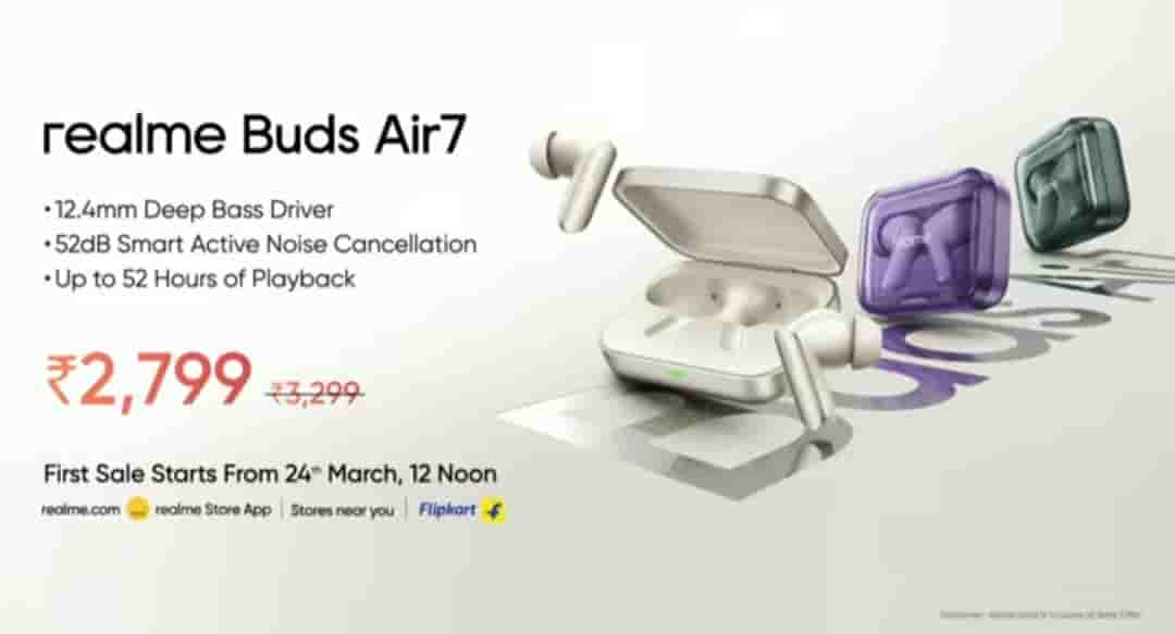 It comes in Ivory gold, Moss green, and Lavender purple color options. The first sale will start on 24th March via realme.com, the Realme Store app, stores nearby, and Flipkart. It is priced at Rs 3,299 but after a discount, it can be purchased at Rs 2,799.
