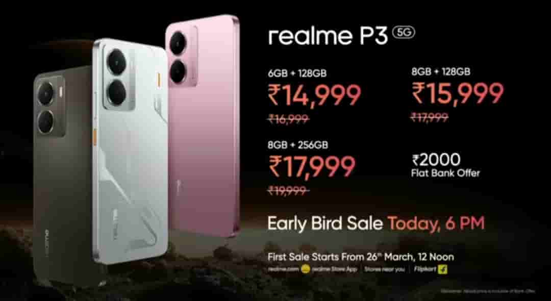 It comes in Space Silver (Space design), Comet grey, and Nebula pink color options. The early bird sale will start today at 6 PM while the first sale will start on 26th March via realme.com, the realme Store app, stores near you, and Flipkart.