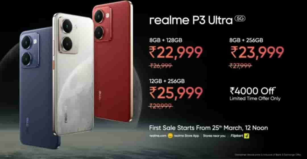 The device comes in glowing lunar white, Neptune Blue, and Orion Red color options. The pre-booking starts today and the first sale starts on 25th March via realme.com, the realme Store app, stores near you, and Flipkart.