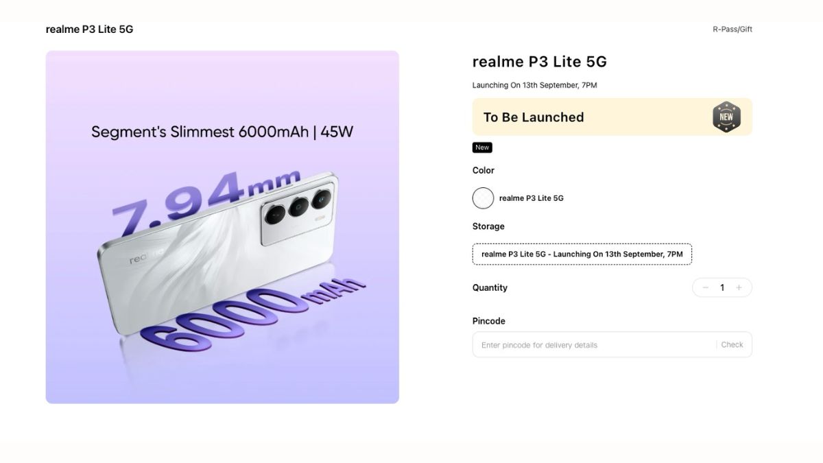 Realme P3 Lite 5G was recently teased to launch soon in the Indian market. Its microsite is already live on both the Realme India website and Flipkart, revealing most of the specifications it will come with. However, details about its pricing and launch date were missing from the microsite—until now. Realme has now officially confirmed that the Realme P3 Lite 5G will launch in India tomorrow, 13th September 2025, at 7 PM IST.