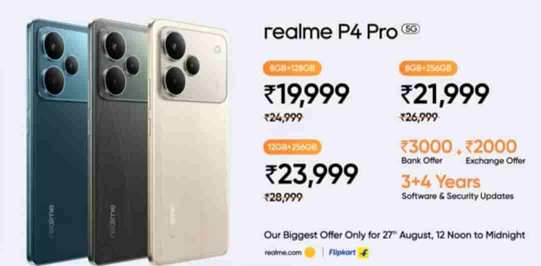 The company is offering a Rs 3000 bank discount and a Rs 2000 exchange offer; these offers are only valid on the first sale day, 27th August (12 Noon to midnight). The device will be available via realme.com, Flipkart, and realme stores.