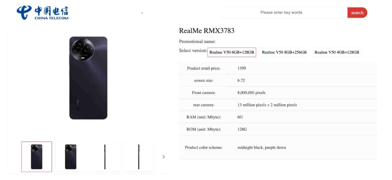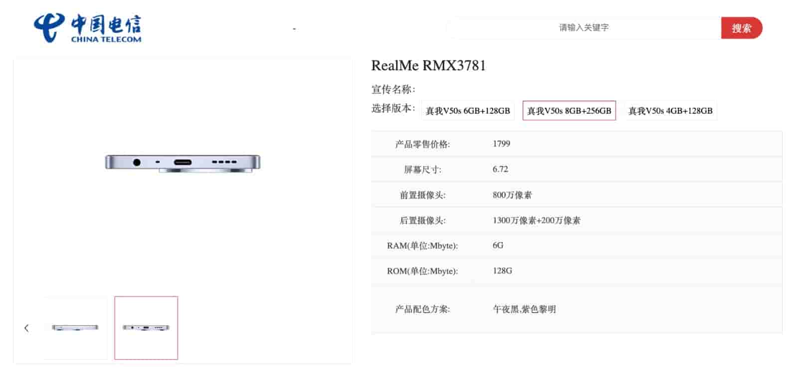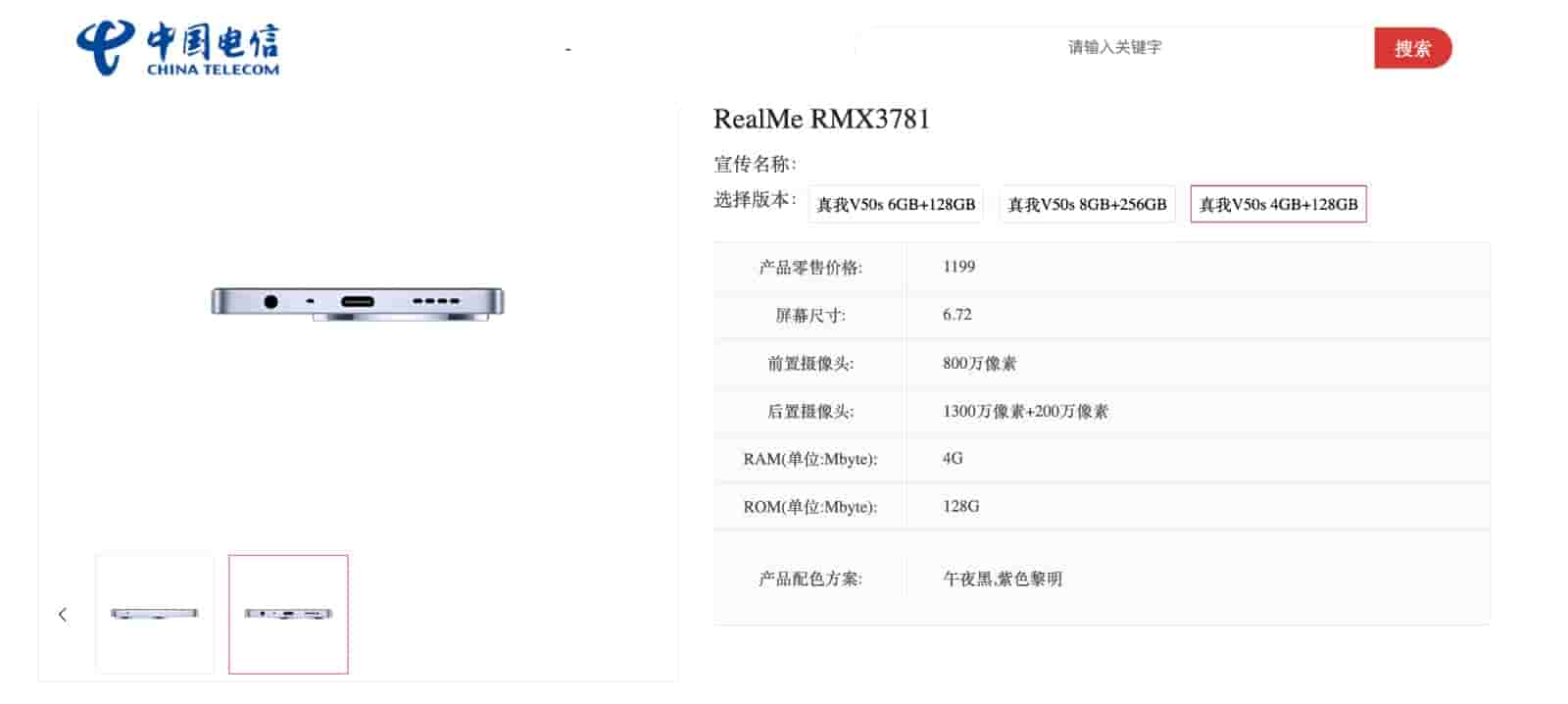 Realme V50 and V50s Smartphones Appear on the China Telecom Website