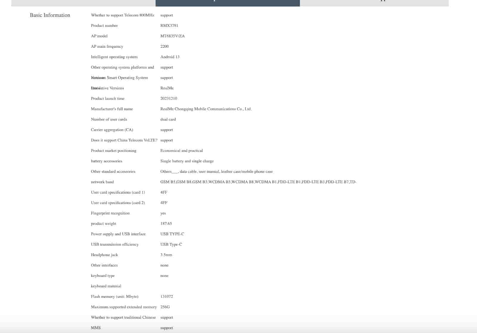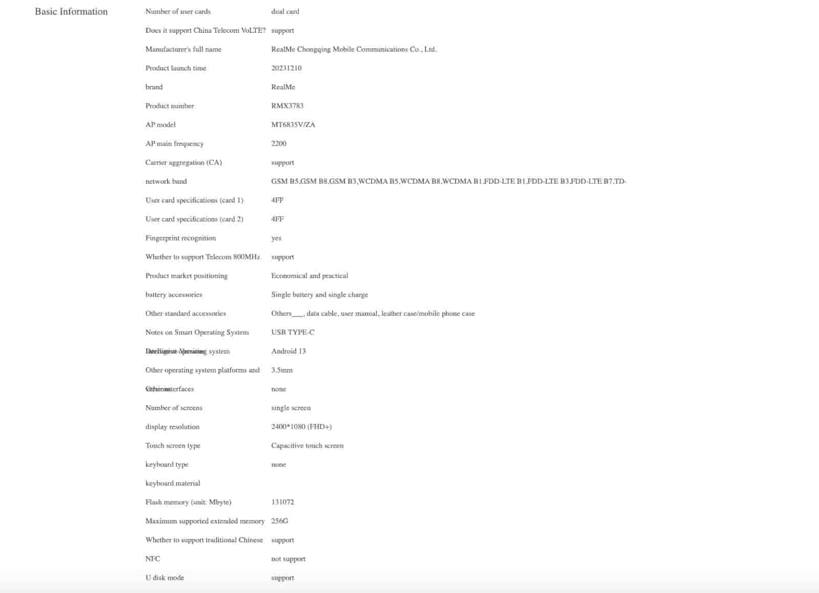 Firstly, the Realme V50s smartphone, it will be a 4G device and will run on the Android 13 operating system. As mentioned, the device will also have three storage variants 4GB/128GB, 6GB/128GB, and 8GB/256GB.