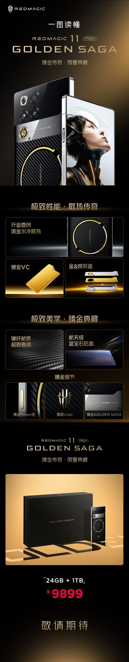 To note, there is a Red Magic 11 Pro+ Golden Saga (Legend of Zhenjin Limited Collection) model available and it is teased with the tagline ‘Ultimate Performance, Legendary Cooling’. The Liquid Cooling Technology, Gold-plated VC, Gold and Silver wind channel, carbon fiber material, space-grade sapphire back case, Zhenjin power button, Zhenjin logo, and Zhenjin Golden Saga-branding are a few of its added specs. It is priced at CNY 9899 for the 24GB/1TB variant, and will be made available soon.