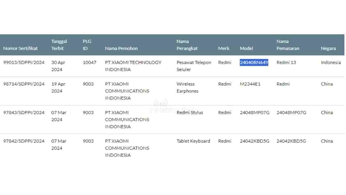 And today The Tech Outlook has once again spotted the Redmi 13 4G NFC variant (24040RN64Y) on SDPPI and TUV certification websites.