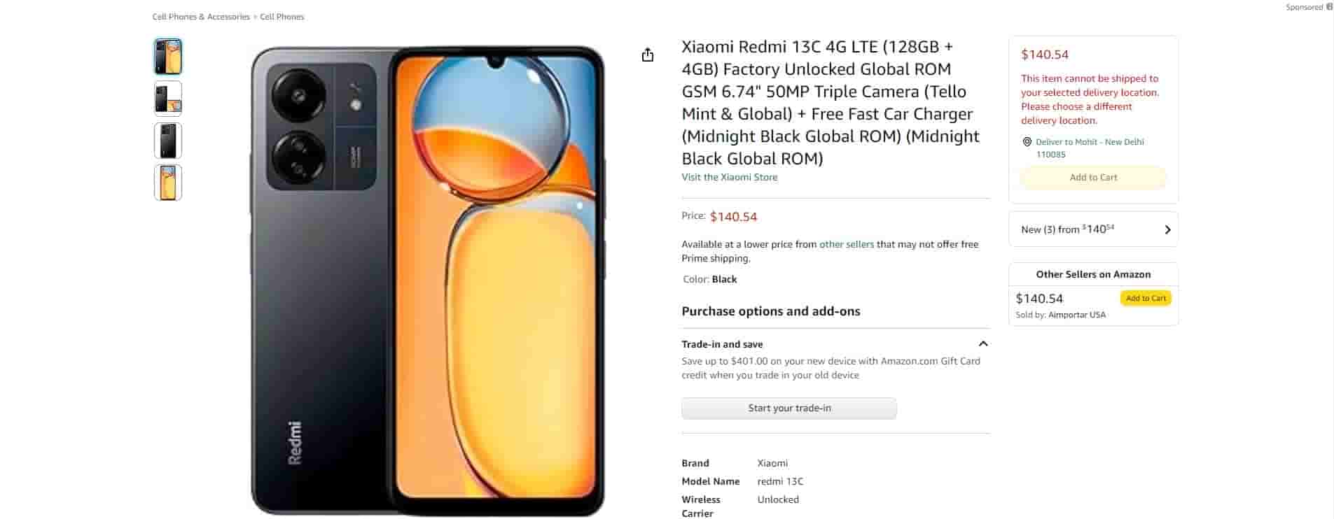 Redmi 13C specifications and pricing details leaked via Amazon US website ahead of it’s official launch