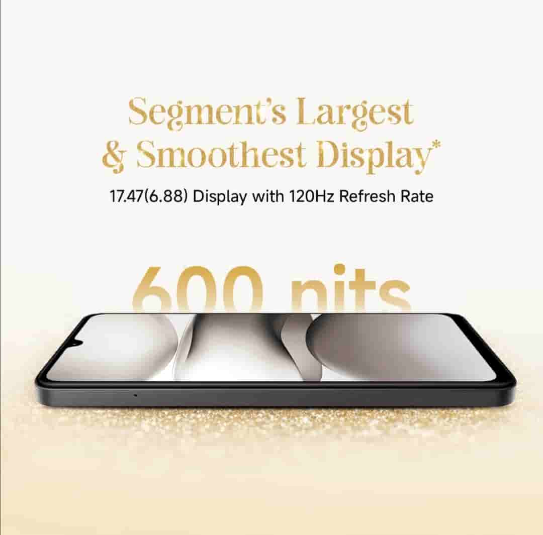 The smartphone features a 6.88-inch Dot Drop display that offers 1650×720 screen resolution, 120Hz adaptive refresh rate, up to 240Hz touch sampling rate, 600 nits HBM brightness, and comes with multiple certifications- TUV low blue light, TUV flicker-free, and TUV Circadian friendly. It is powered by an Unisoc T7250 octa-core processor that arrives with a clock speed up to 1.8GHz. The chipset is paired with 3/4GB LPDDR4X RAM and up to 128GB internal storage.