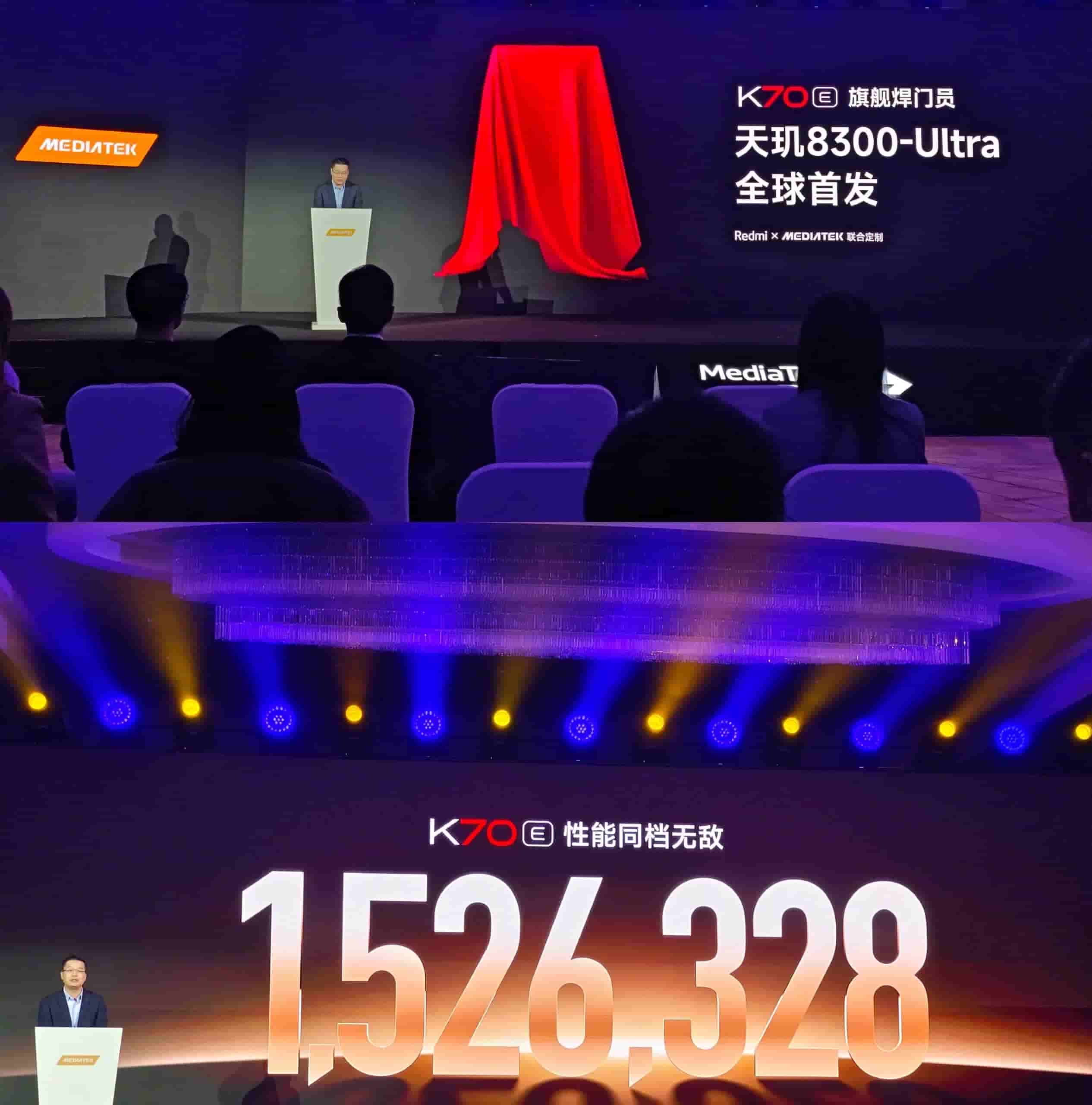 The Redmi K70E smartphone has been officially confirmed to use MediaTek’s Dimensity 8300 Ultra chipset, and the device has scored a total of 15,26,328 points on the AnTuTu benchmark.