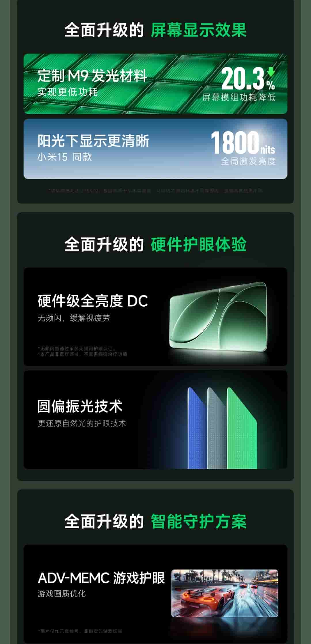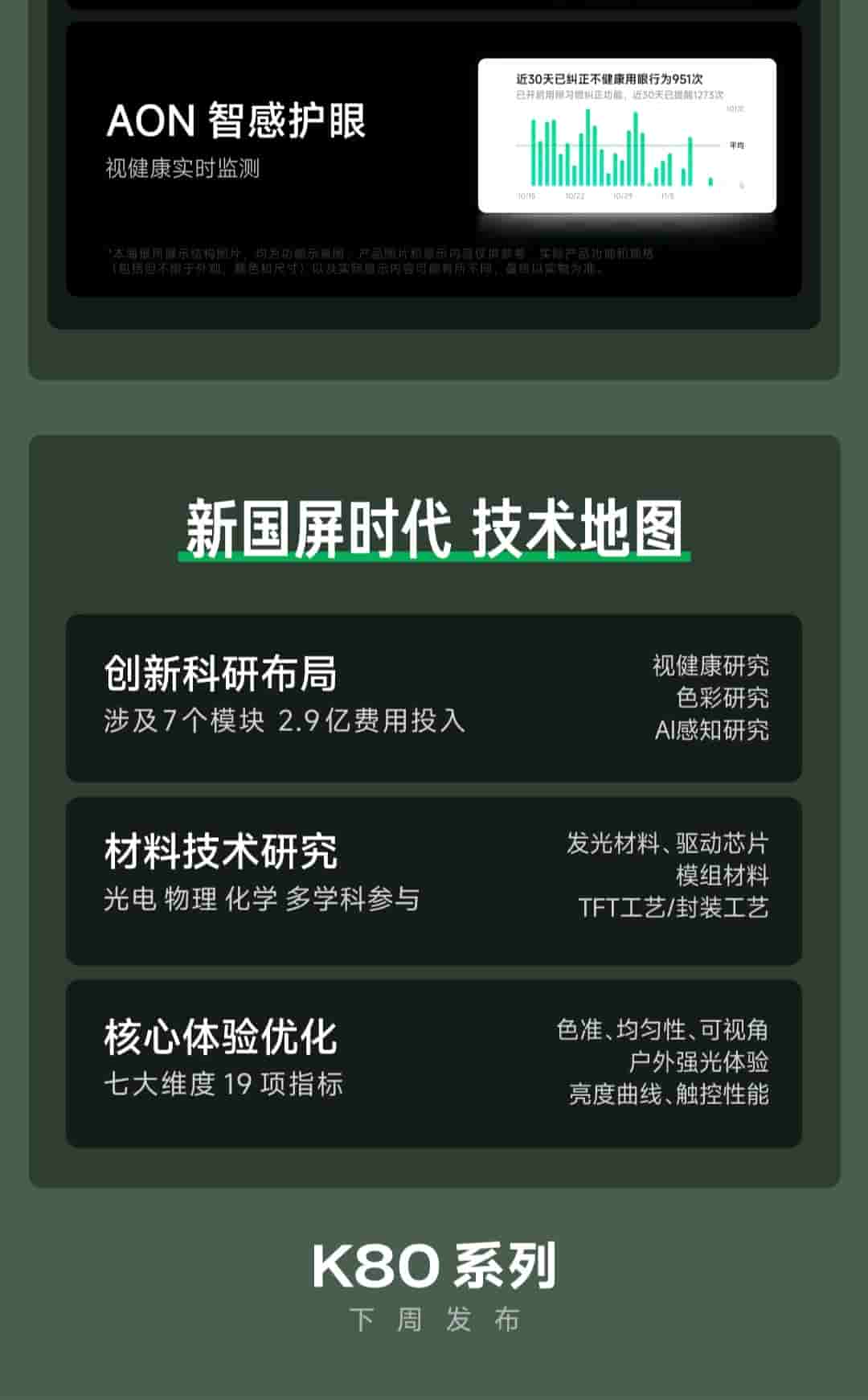 As per what has been revealed, the Redmi K80 series will be featuring an OLED TCL M9 LTPS display screen, supporting 2K resolution, 120Hz refresh rate, 1800 nits HBM mode, and circular polarized light for eye protection. An ultrasonic in-display fingerprint reader is also an important spec revealed today. 20.3% reduced power consumption, hardware level full brightness DC, ADV-MEMC gaming eye protection, and AON smart eye protection are some of the other revealed display specs.