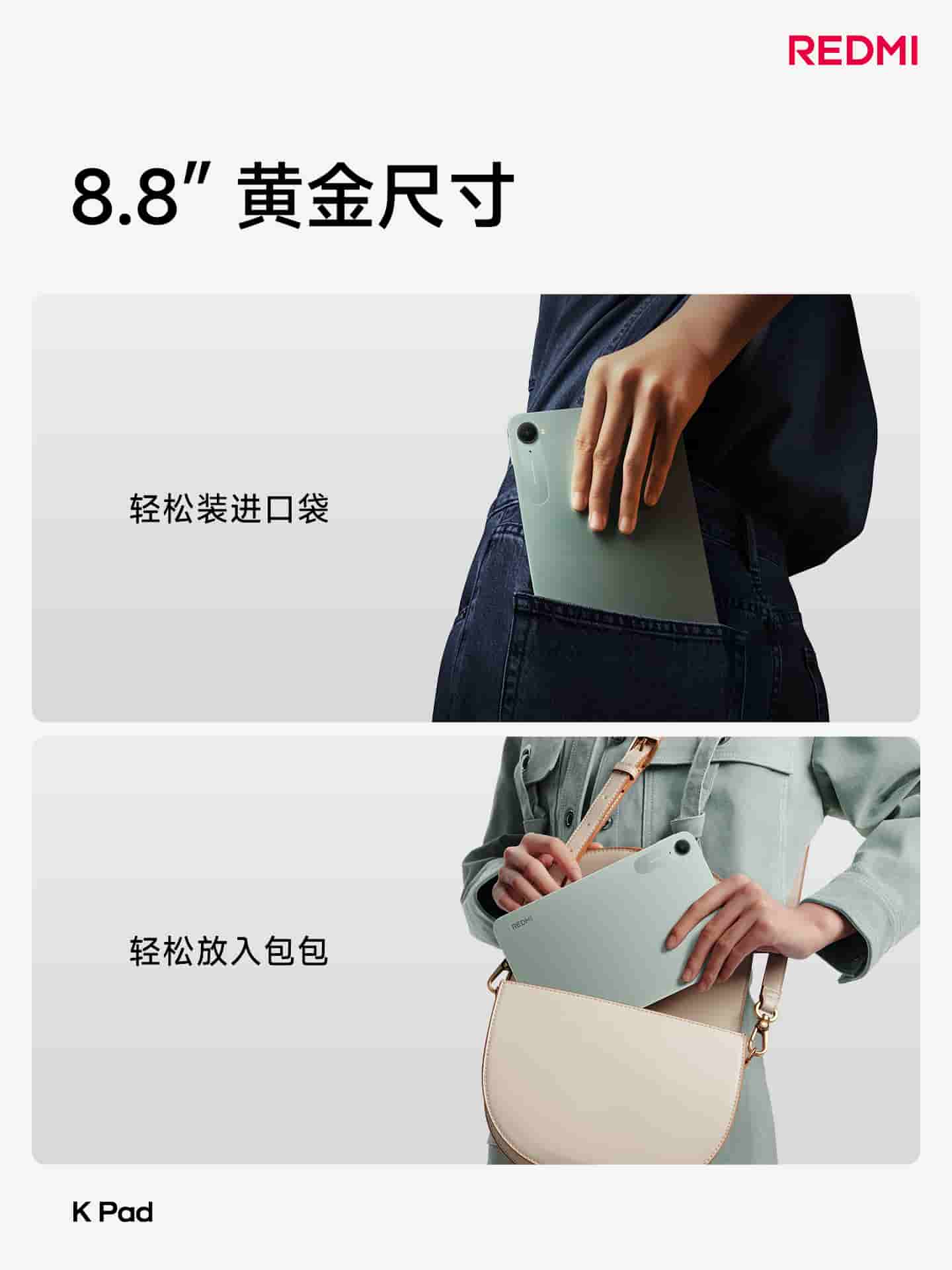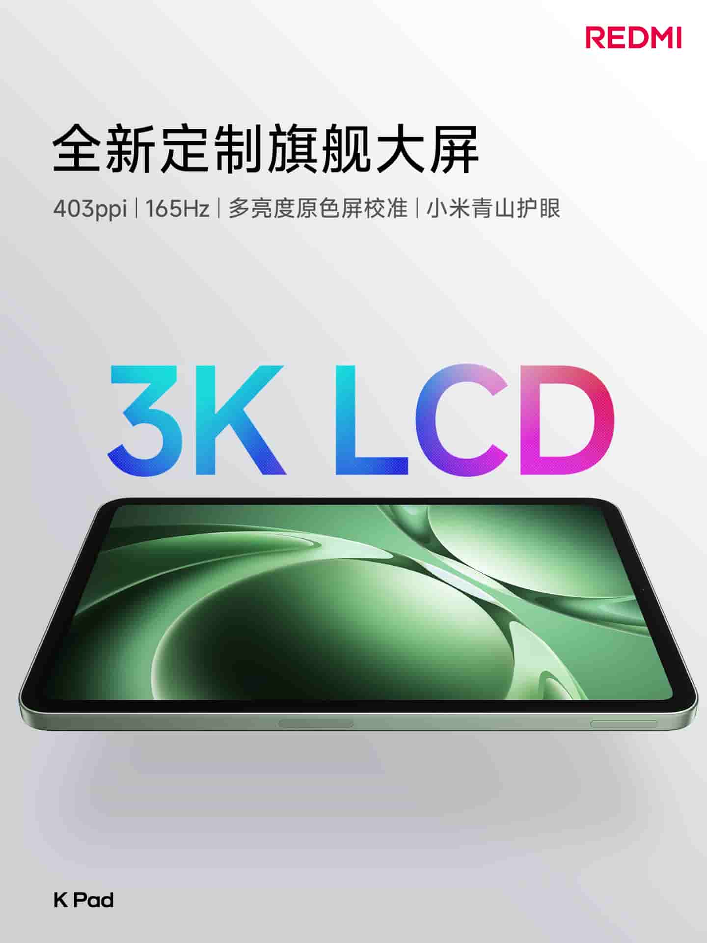 About the Redmi K Pad, apart from the Spruce Green and Haze Purple colors, a Deep Black color choice will also be made available for the device. An 8.8″ golden size display screen is part of the device as earlier revealed, with a form factor that enables users to easily fit it in their pocket or bag. Moreover, the display will be an LCD panel which supports 3K resolution, 403 PPI screen density, 165Hz refresh rate, multi-brightness primary color calibration, and Xiaomi Qingshan eye care protection.