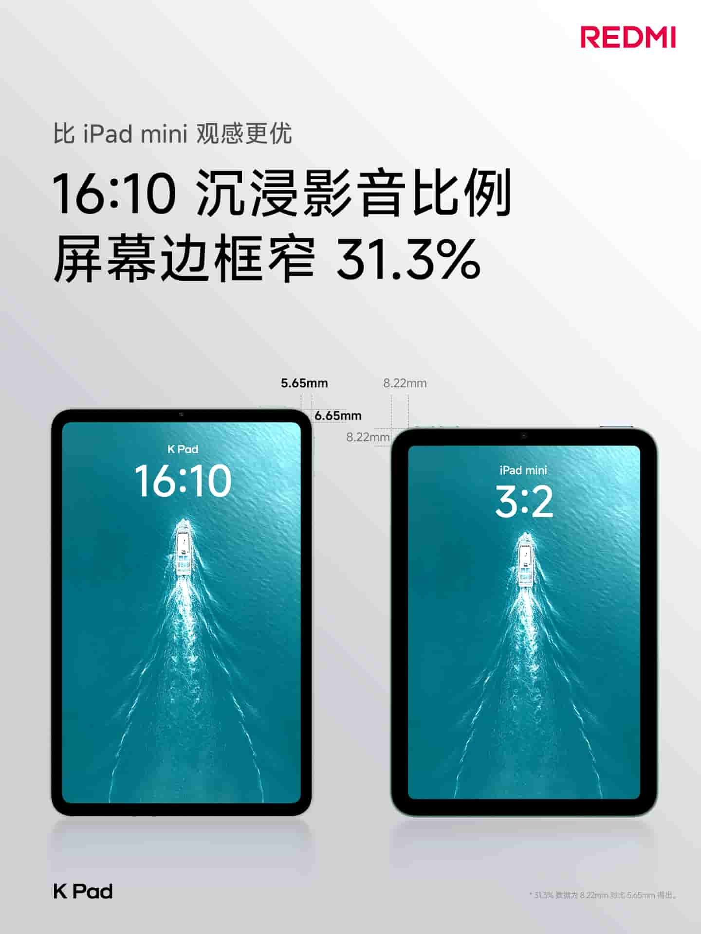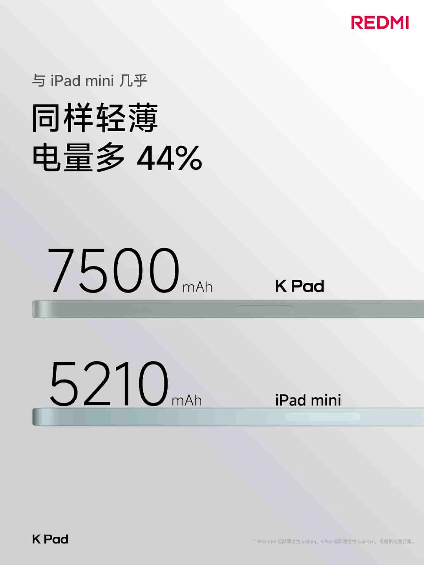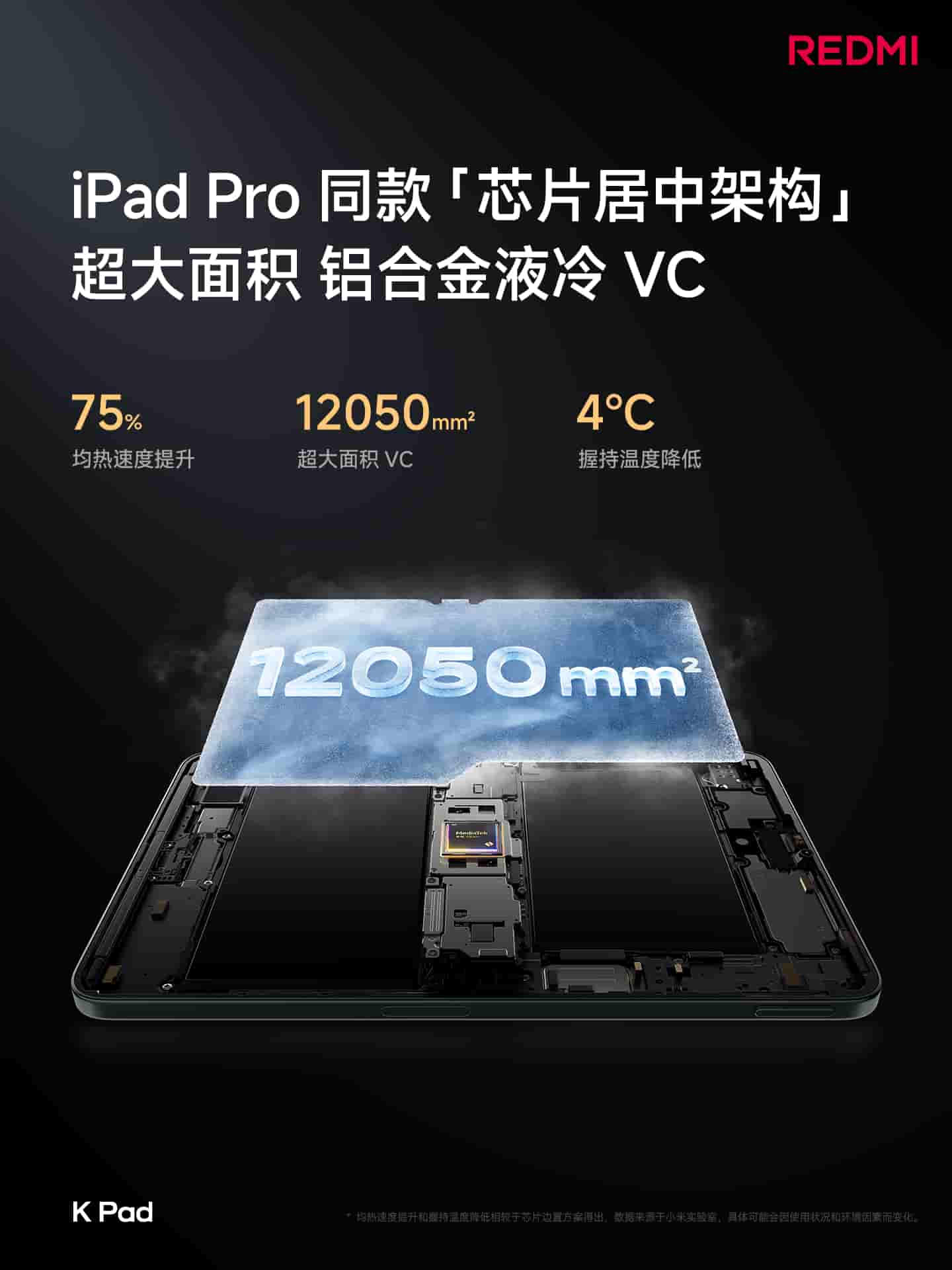 In terms of size, it is narrower than the iPad mini from Apple and is better suitable for one-handed operation. Compared to the iPad mini of Apple, this device has a 16:10 aspect ratio and 31.3% narrower bezels. The thickness and weight of the Redmi K Pad is the same as that of the Apple iPad mini device, but the former packs a 44% larger battery backup of 7500 mAh. MediaTek’s Dimensity 9400+ flagship chip is part of it, and the device occupies the same Apple iPad Pro chip-centered architecture with a large area aluminum alloy liquid cooling vapor chamber (75% improved heat absorption speed, 12050 mm² large area VC, 4°C lower holding temperature).