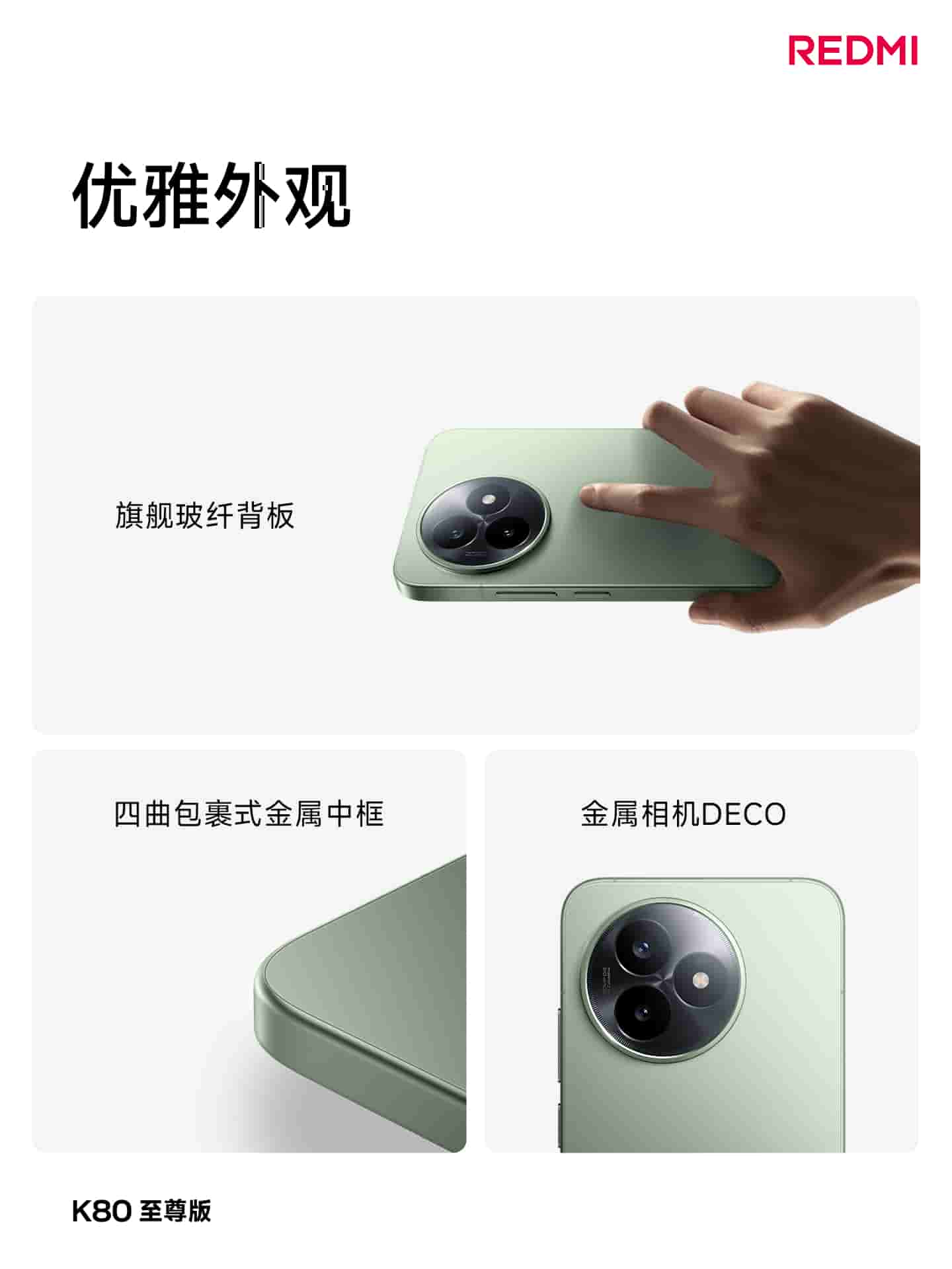 The Redmi K80 Ultra smartphone as per the new teasers is revealed to offer Ice Blue and Sandstone Ash colors in addition to the previously-teased Spruce Green and Tsukiiwa White color variants. It will feature an elegant look featuring a flagship fiber glass back panel, four-curved wrapped metal middle frame, and a metal camera module housing two camera sensors (~ 50MP OIS AI camera system) and an LED flash light.