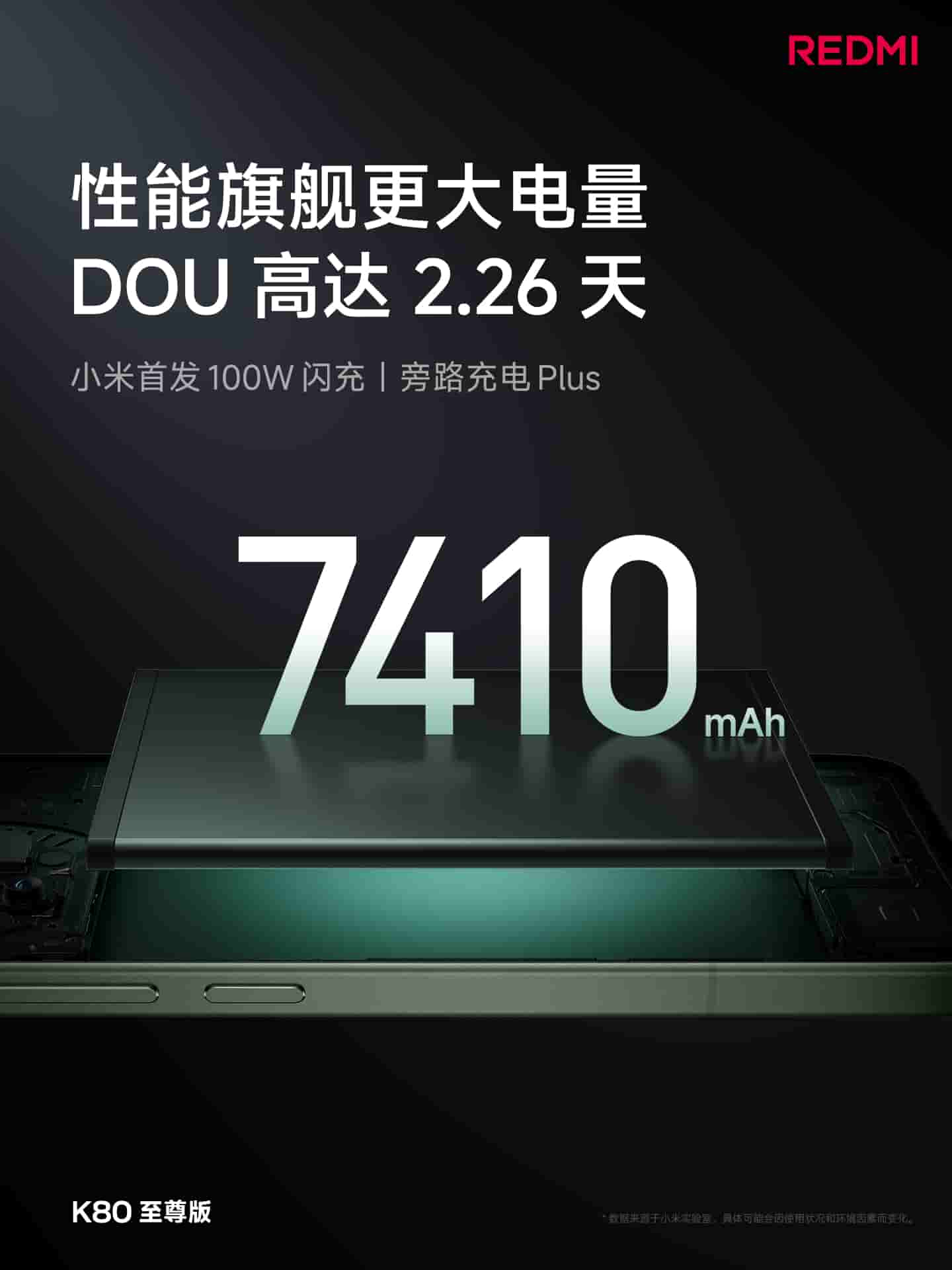 Furthermore, for a stable performance, Redmi’s largest 3D ice-sealed circulation cold pump with an innovative double-stage boss structure is equipped within it. A 6500 mm² large area loop heat pipe and 3°C core heat reduction are part of it. Also, the brand has again teased its battery specs, pointing out the 7410 mAh battery capacity, 2.26 days of use (DOU), 100W wired charging, and bypass plus charging features. Also, the industry’s first master-level coaxial symmetrical dual speakers and ultra-wideband cyber motor are again pointed out as its key specs.