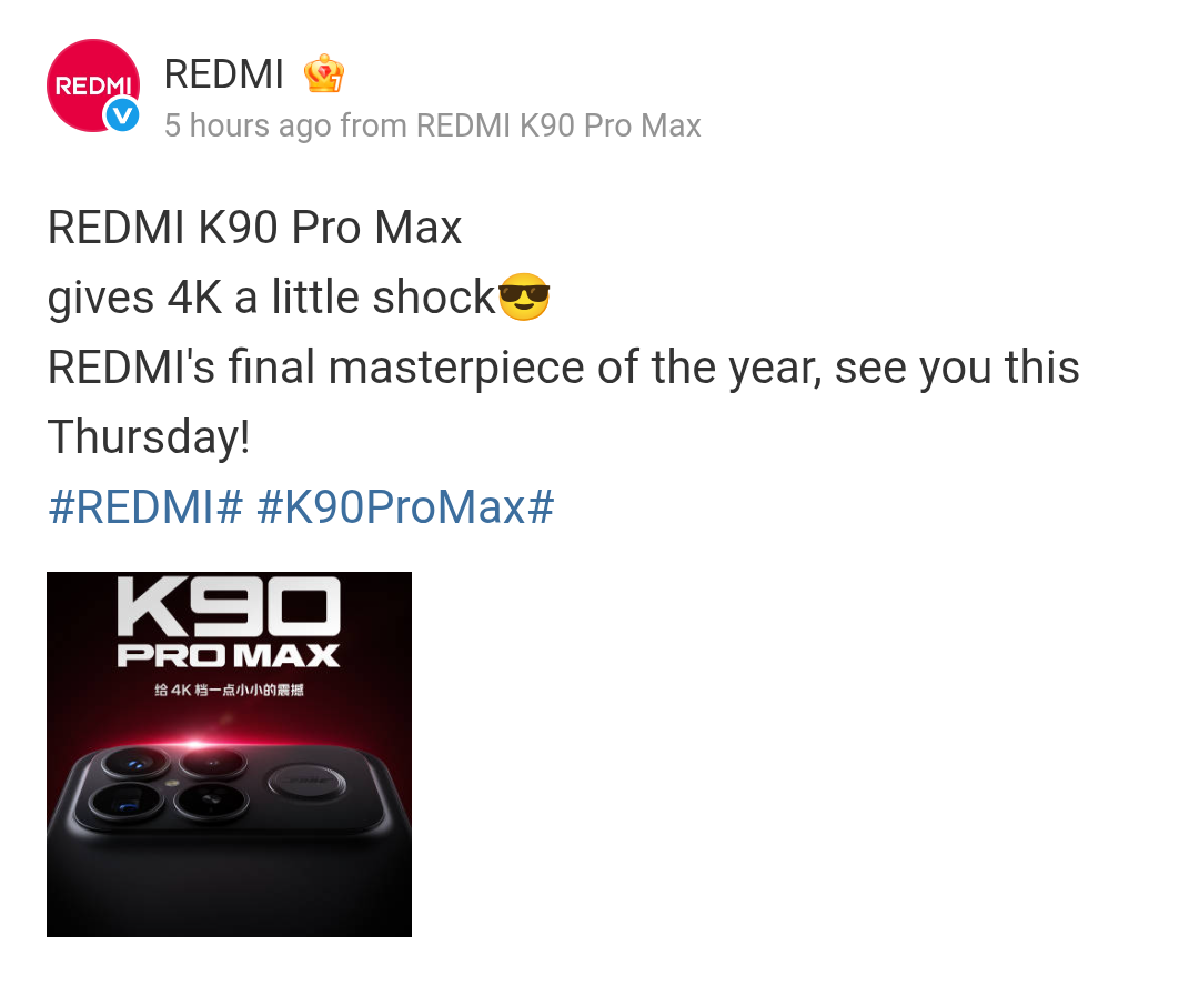 Redmi K90 Pro Max – Newly-Shared Teaser Updates