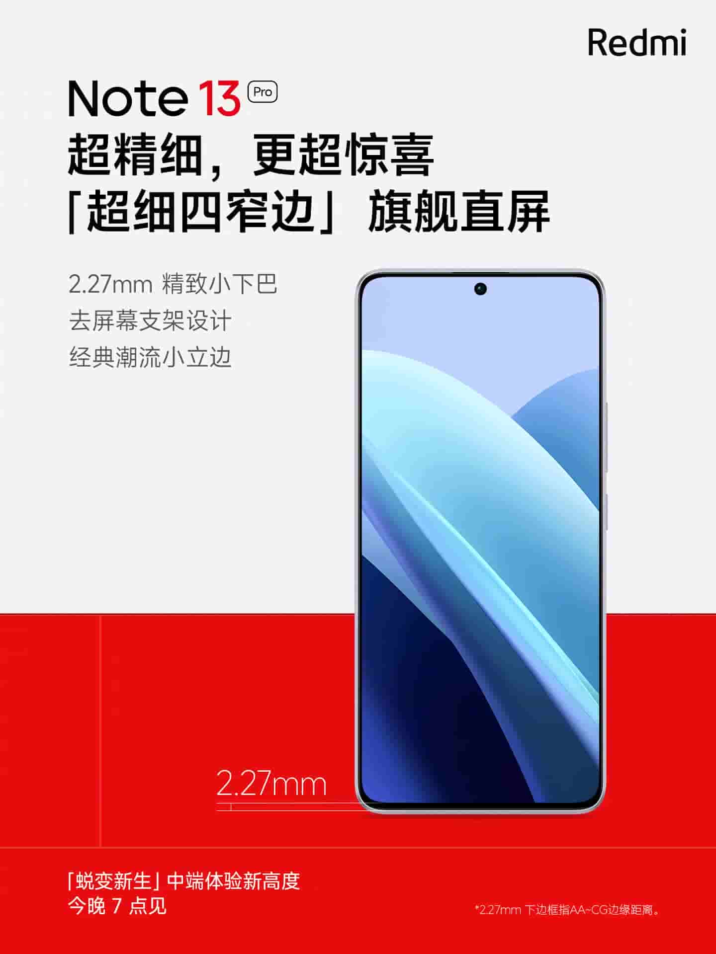 One noteworthy distinction between the two models is that the Redmi Note 13 Pro will sport a flat display, while the Note 13 Pro+ will feature a curved edge screen. Today, Redmi confirmed that the Note 13 Pro will boast an ultra-slim bezel design, with the chin measuring just 2.27mm. The Note 13 Pro will have glass panels on the front and rear, and it will calculate a thickness of 7.98mm.