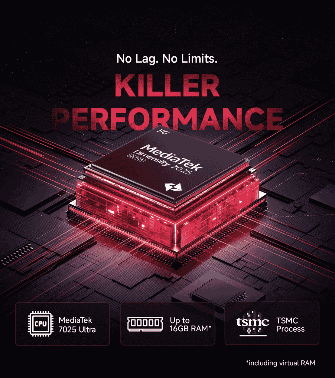 Under the hood, it will be powered by the MediaTek Dimensity 7025 Ultra processor paired with up to 16GB of RAM (including virtual RAM). The device will pack a 5110mAh battery, TÜV‑tested for a four‑year battery lifespan, rounding off what Redmi is positioning as a strong new entry in the mid‑range market.