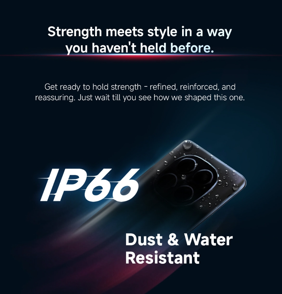 The smartphone is teased to arrive with IP66 dust and water resistance in India. This is different from the global variant of Redmi Note 15 5G, which arrived with an IP65 rating.