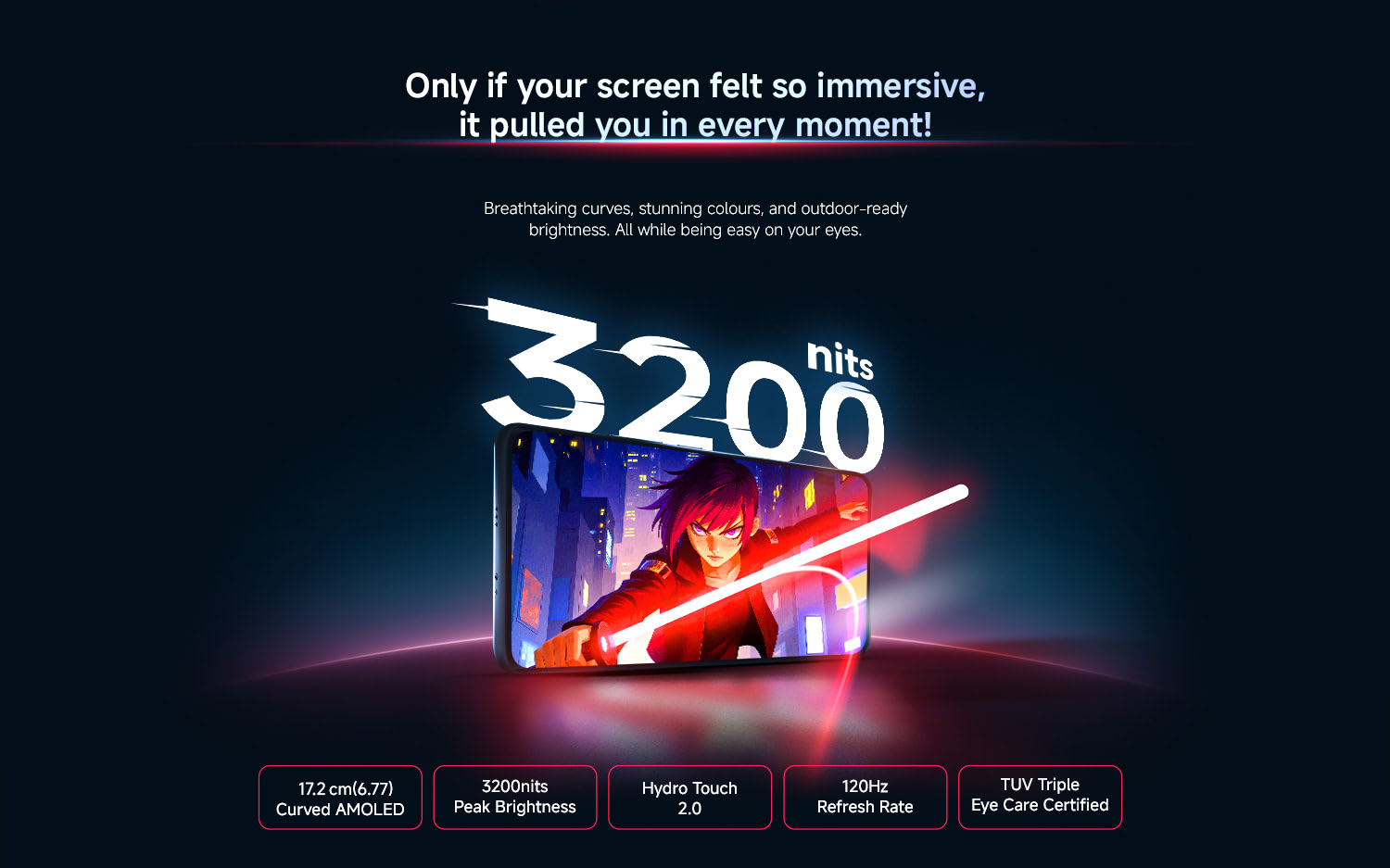 For its display, a 6.77″ curved AMOLED display is revealed to be featured, and it will be supporting 3200nits of peak brightness, 120Hz refresh rate, and hydro touch 2.0 technology. The display is also TUV triple eye care-certified. On the camera side, features like a 108MP MasterPixel high resolution camera, 4K video recording with OIS, Multi-Focal Portrait, and Dynamic Shot have been confirmed. The device will also be supporting IP66-rated dust and water resistance too.
