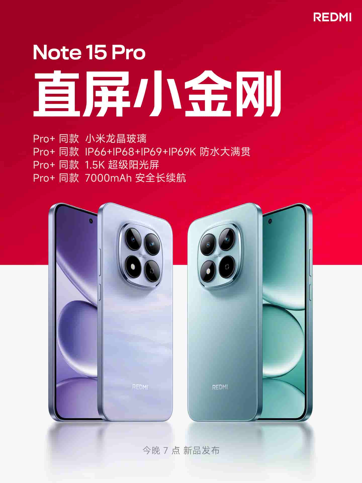 Redmi Note 15 Pro will feature Xiaomi Dragon Crystal Glass and a 1.5K Super sunlight display. It will arrive with IP66+IP68+IP69+IP69K ratings, making the device waterproof. The device will be equipped with7000 mAh battery. The device appears to feature a design similar to the Pro+ variant as well.