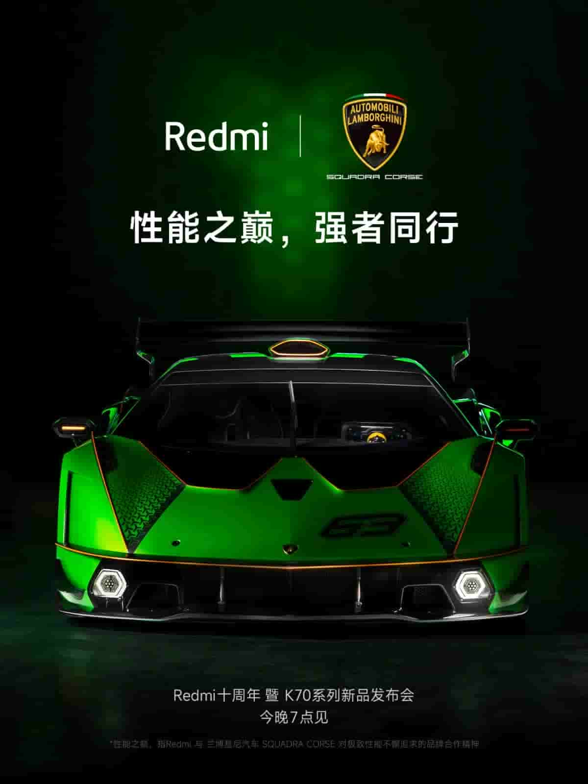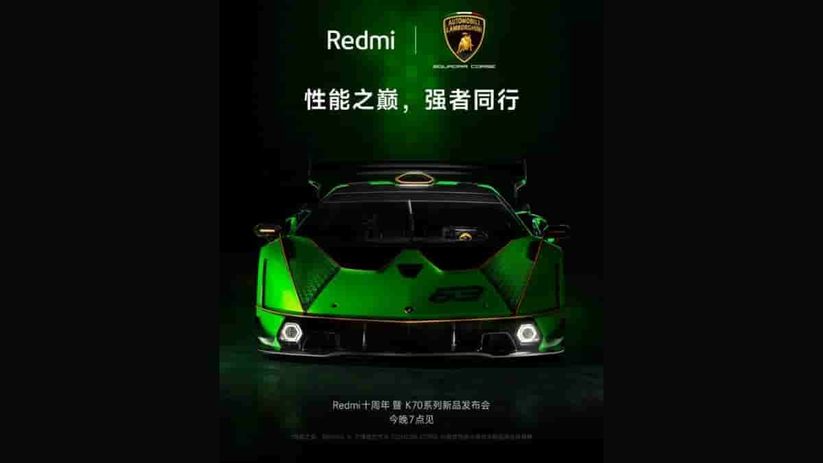 Although the company has not mentioned it exactly it is assumed that the company will be unveiling a special edition Redmi K70 series smartphone in collaboration with Lamborghini SQUARDA CORSE. Previously also the company collaborated with Mercedes AMG Petronas F1 team to launch a Redmi K50 Champion version. However, what this new partnership is about will only be known after a few hours at Redmi’s launch event.