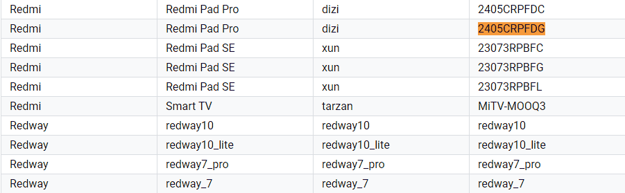 Let me start with the Wifi variant, this is spotted on the Google Play Console with a model number “2405CRPFDL” and “2405CRPFDG”. Earlier this model number was spotted on the EEC certification website, but at that time the moniker wasn’t known. But thanks to the Google Play Console listing, we have a clear understanding of what the global variant may look like. It is listed on Google Play Console with a code name Redmi dizi and model number “2405CRPFDL”.