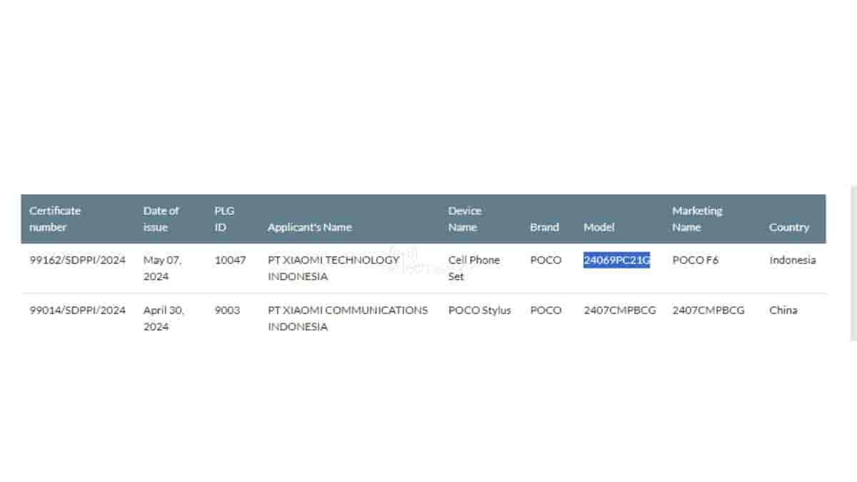 Coming to the Poco F6, it has been spotted on the SDPPI certification with the model number “24069PC21G”. It is listed with the certificate number “99162/SDPPI/2024”, issued on May 7, 2024, and the moniker is confirmed in this listing. However, it doesn’t provide much information about the features or specs that this smartphone will carry, except for the indication that it will be coming to Indonesia soon.